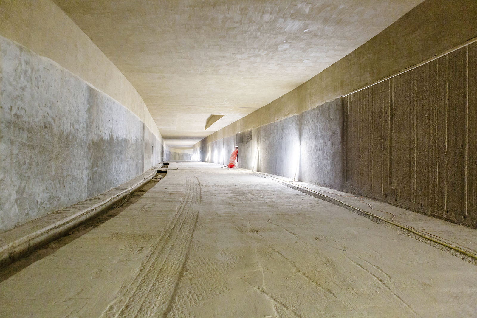Dünnwandig den Konturen folgend, wurde der Brandschutzputz aufgebracht; er verändert den Tunnelquerschnitt und die ursprünglichen Raumgeometrien kaum.