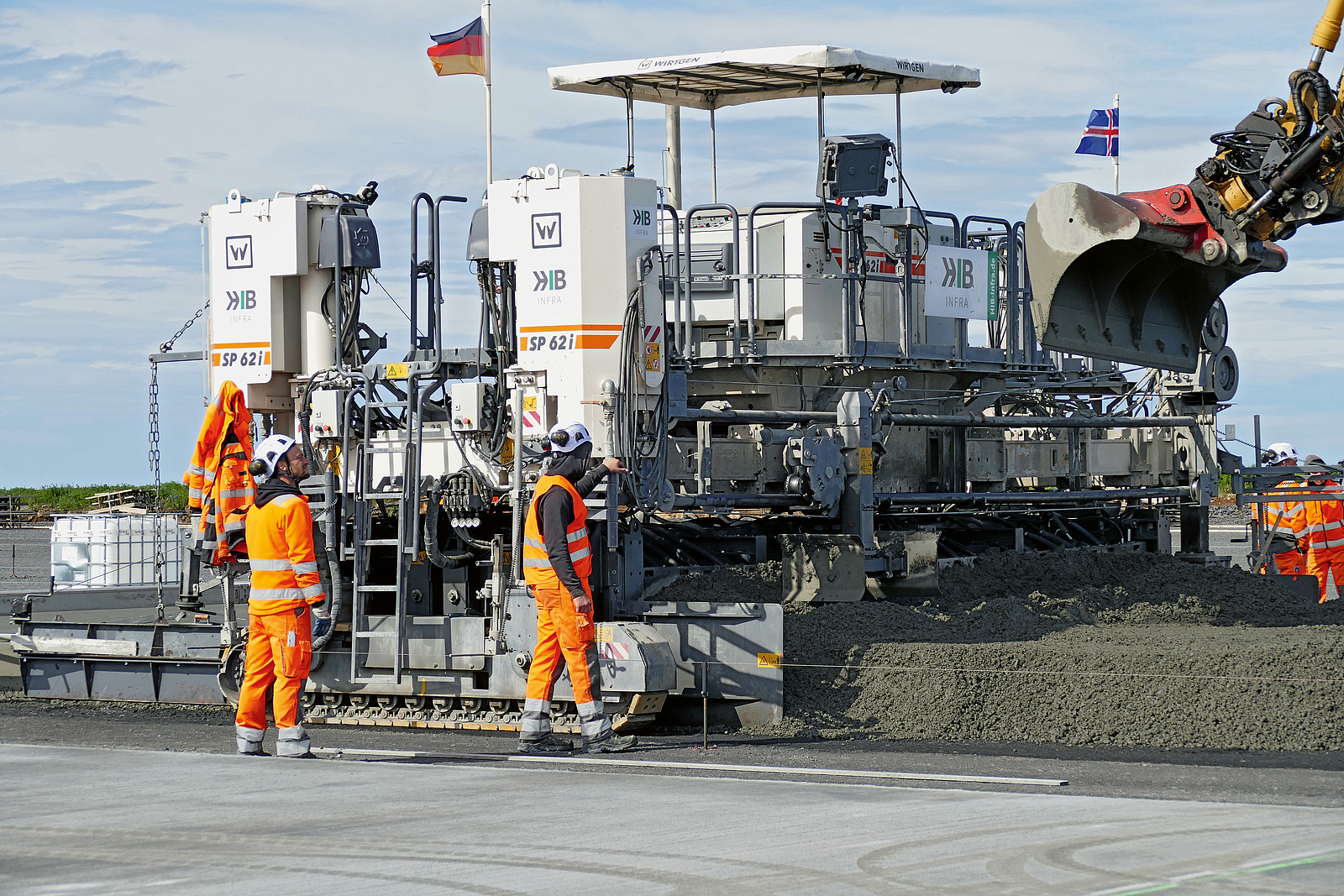 Zum Einsatz kam dabei u. a. der Gleitschalungsfertiger SP 62i von Wirtgen. Modernste Maschinentechnologie, wie z. B. sein präzises Lenk- und Nivelliersystem und der automatische Längsglätter, unterstützten das Einbauteam dabei, trotz des engen Zeitplans die hohen Qualitätsanforderungen zu erfüllen.