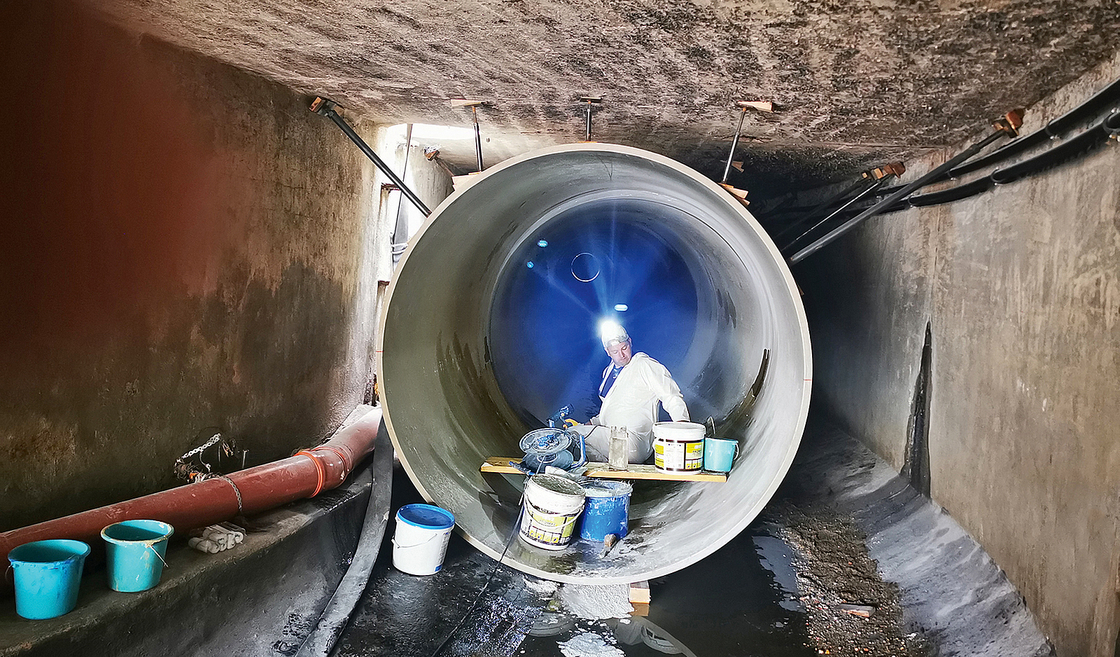 Aarsleff Rohrsanierung brachte im Görlitzer Pontekanal insgesamt 100 m GFK der Nennweite DN 2200 per Reliningverfahren ein.