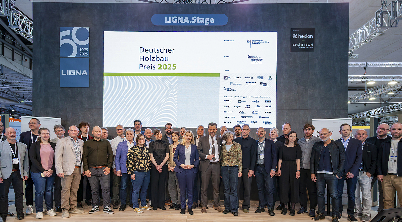 Vier Holzbauprojekte wurden am 27. Mai 2025 – im Rahmen der LIGNA, der Weltleitmesse für die internationale holzbe- und verarbeitende Industrie in Hannover – mit dem Deutschen Holzbaupreis 2025 ausgezeichnet: das Studierendenwohnheim „Collegium Academicum“ in Heidelberg, das Mikroapartmenthaus „Cube 68“ in Dinkelsbühl, der Gemeindesaal in Legau und die Kultur- und Sporthalle in Alfter. Geehrt wurden gleichermaßen Bauherren, Architekten, Tragwerksplaner und Holzbaubetriebe der ausgezeichneten Beiträge. Das Verfahren für metallfreie punktgestützte Flachdecken aus Holz, Gradient Density, wurde mit einem Sonderpreis gewürdigt.