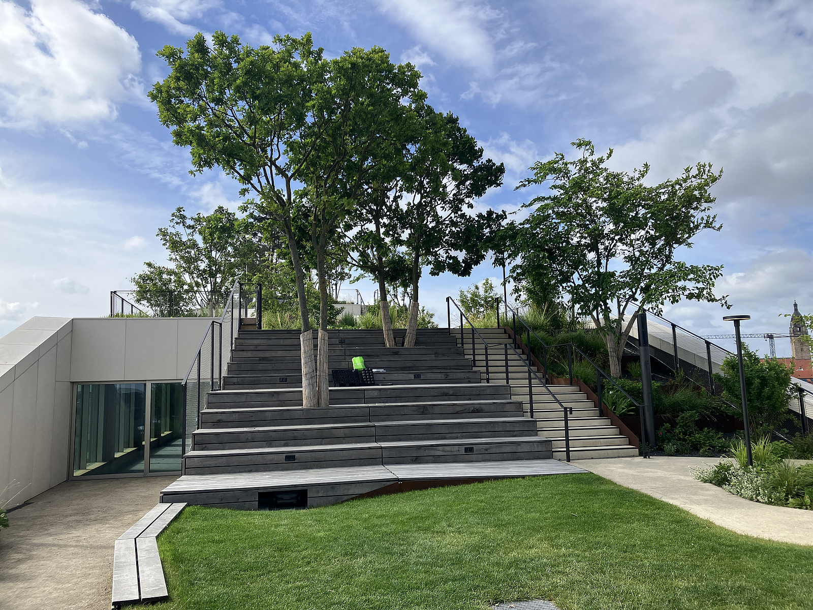Der Dachgarten, der von capattistaubach urbane landschaften geplant und von Optigrün mit Produkten und Systemen ausgestattet wurde, ist nicht nur ein optisches Highlight, sondern bietet auf einer Fläche von 2.200 m² auch viele Möglichkeiten für Rückzug und Entspannung. Durch vorhandene Arbeitsplätze im Garten sowie großzügige Rasenflächen kann der Dachpark für Arbeit und Freizeit gleichermaßen genutzt werden.