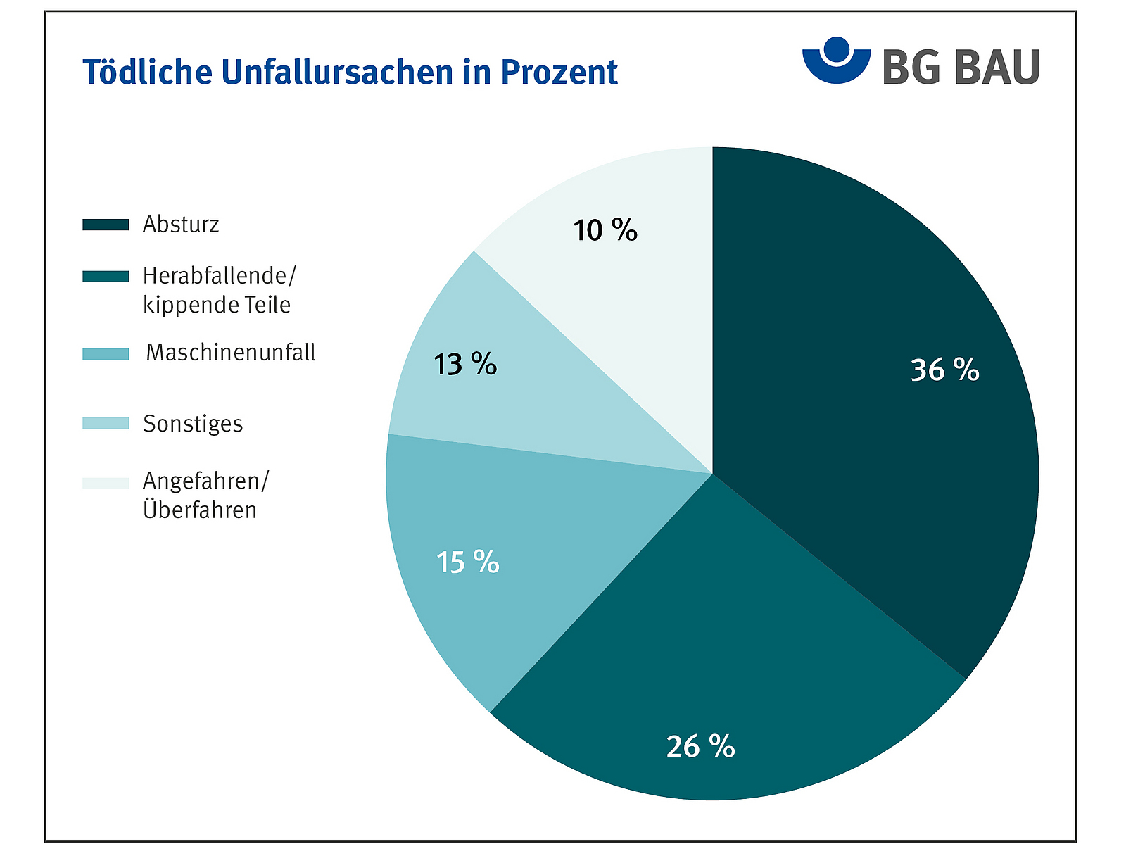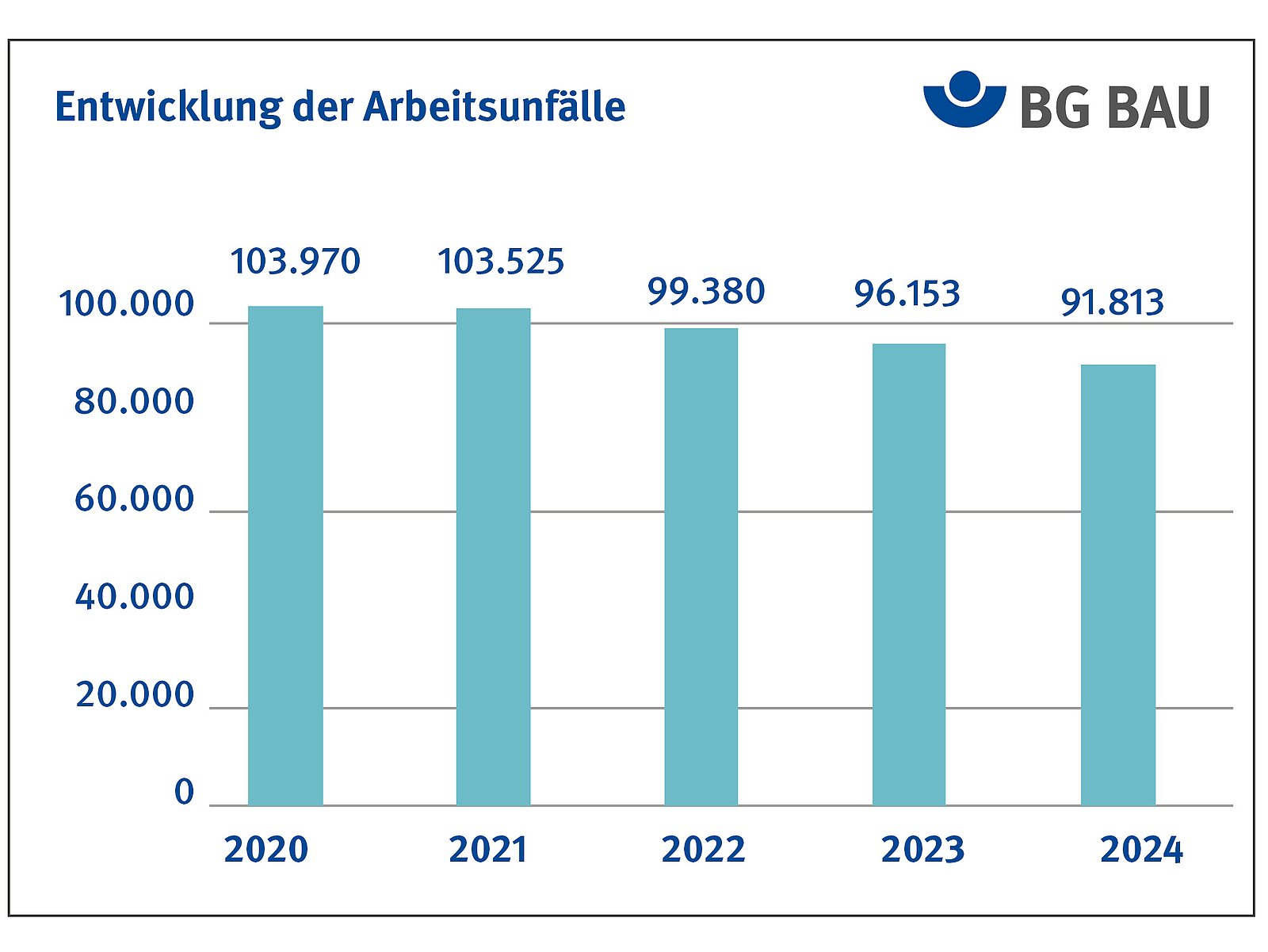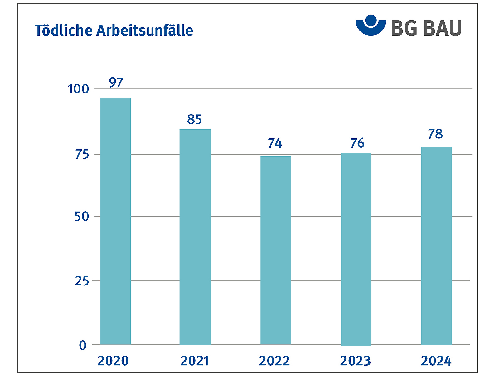 Mit rund 91.800 Fällen waren es 4,5 % weniger Unfälle als 2023, jedoch ist die Zahl der tödlichen Unfälle leicht von 76 auf 78 gestiegen. Diese wurden häufig durch Abstürze (36 %) oder herabfallende und kippende Teile (26 %) verursacht.