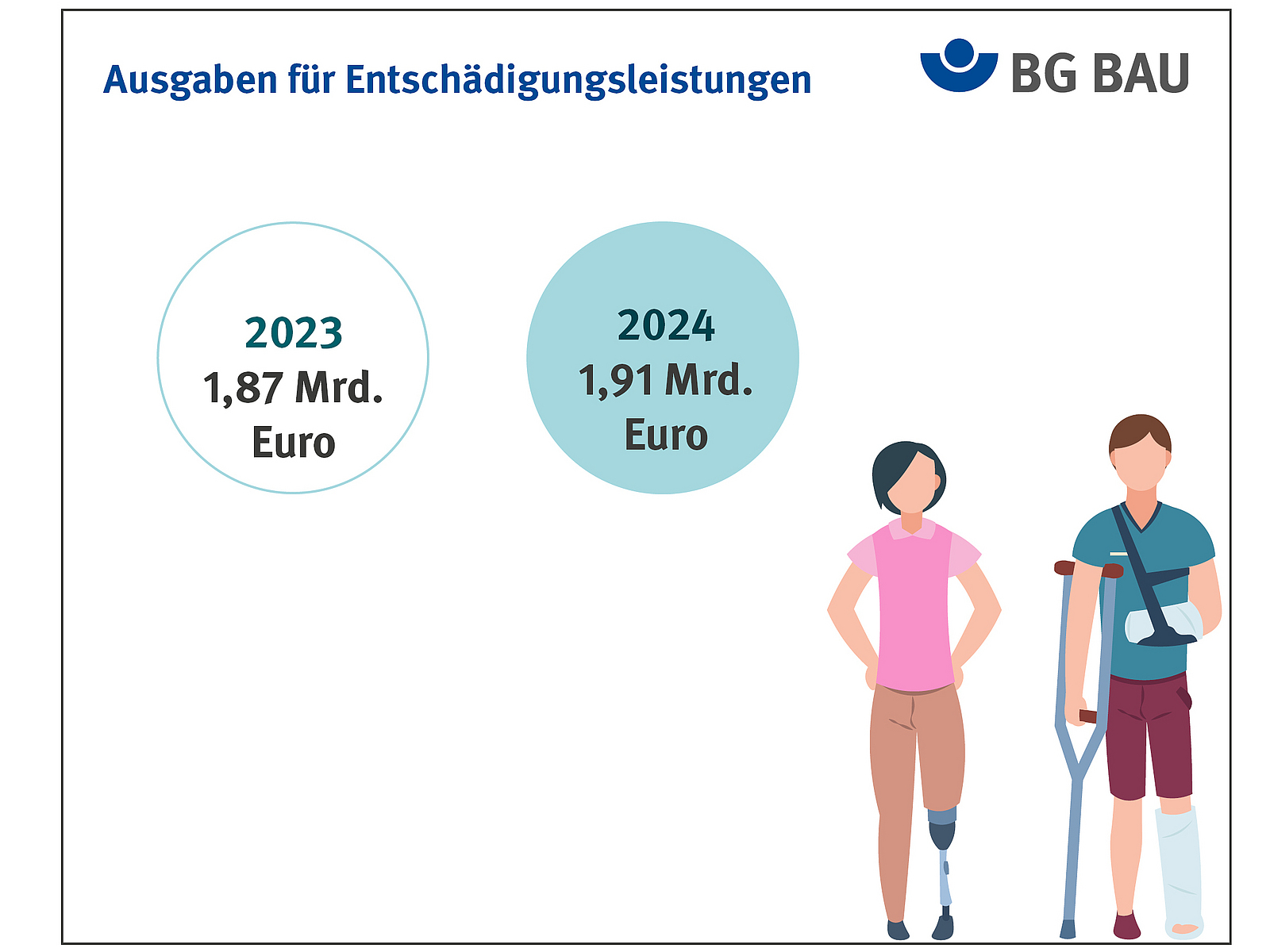 Trotz steigender Ausgaben für die medizinische Versorgung, Reha-Maßnahmen und Rentenzahlungen in Höhe von 1,91 Mrd. € konnte die BG BAU die Beiträge für Unternehmen senken. Der neue Beitragsfuß für 2024 liegt bei 39,5 ct je 100 € Arbeitsentgelt in der Gefahrklasse 1(2023: 42 ct) – ein Zeichen für stabile Finanzen bei gleichzeitigem Engagement für Prävention und Versorgung.