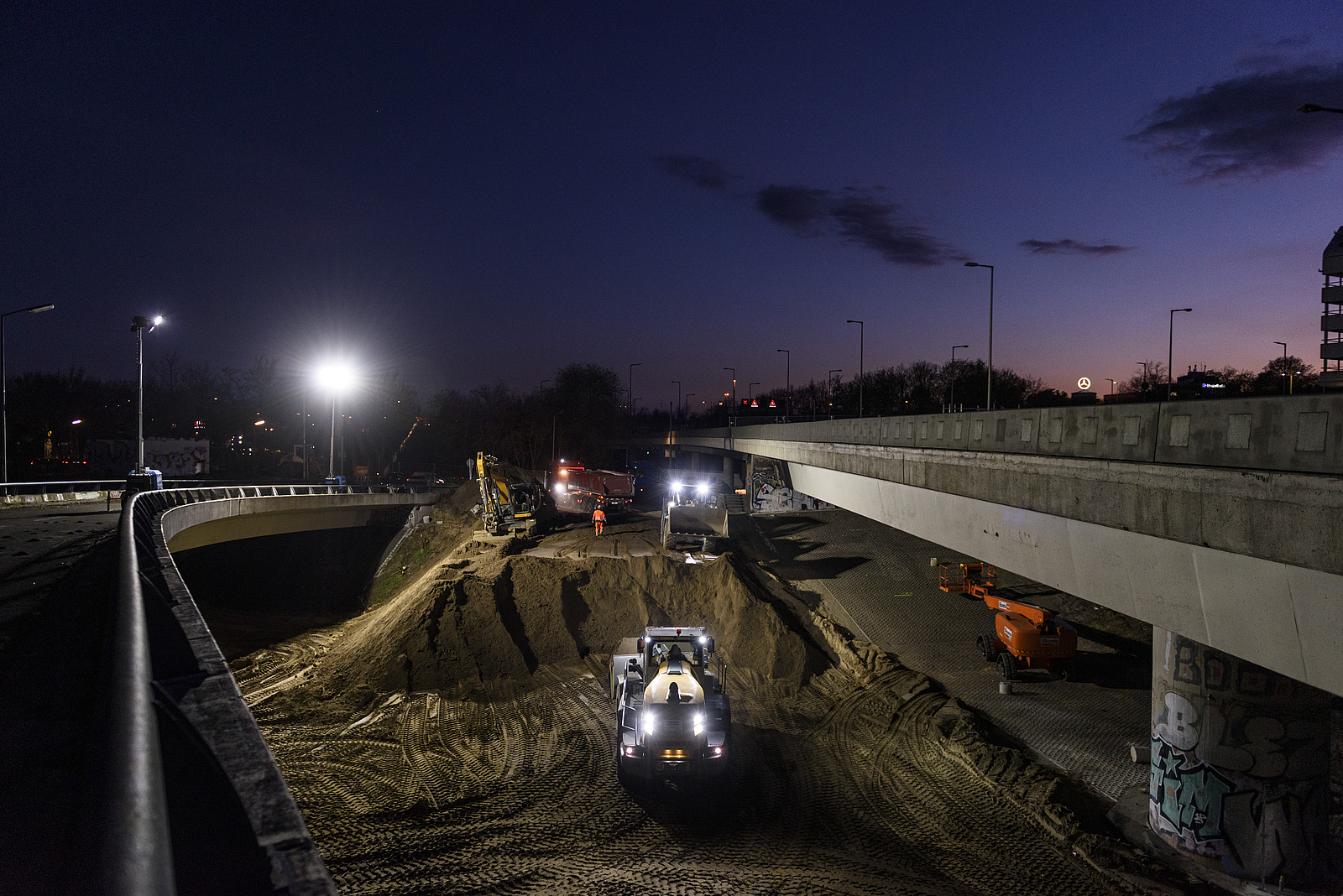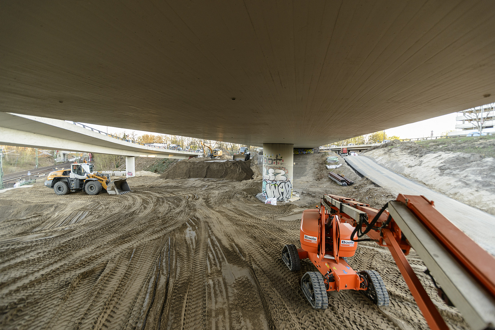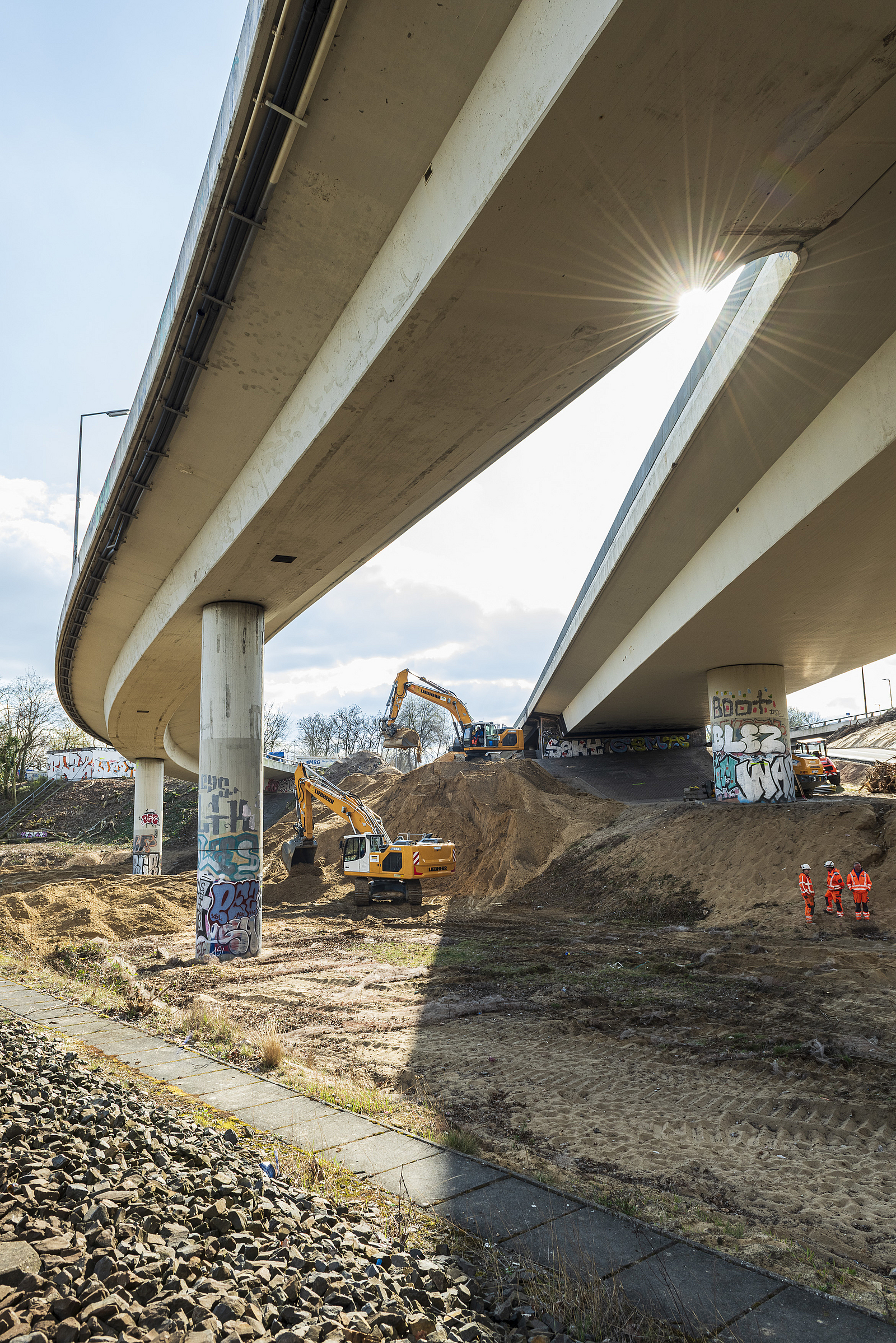 Die Rahmenbedingungen der Baustelle und die gebotene Geschwindigkeit der Umsetzung erforderten zum einen umfangreiche Schutzmaßnahmen für den laufenden Verkehr und die bestehende Infrastruktur. Zum anderen waren die unmittelbar angrenzende Bewohnerschaft wie auch die Beschäftigten auf den Baustellen vor dem unvermeidlichen Lärm und Staub bestmöglich zu schützen.