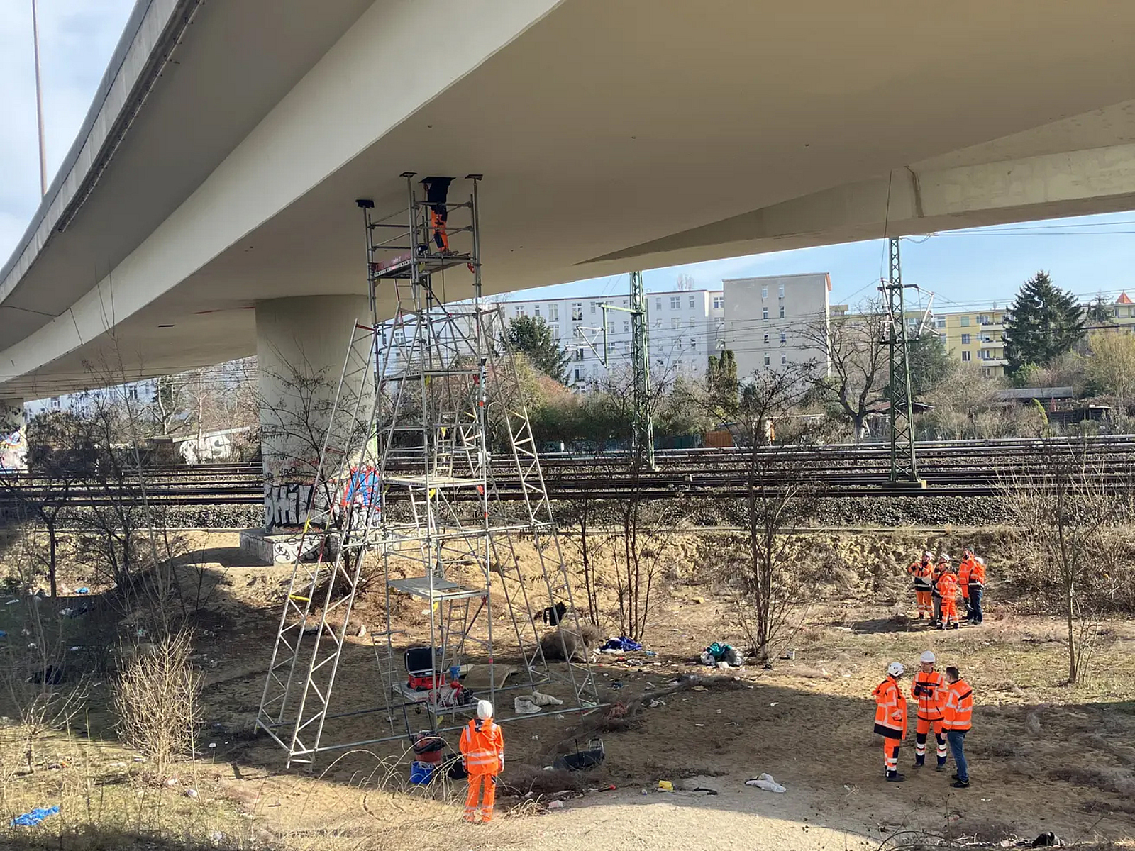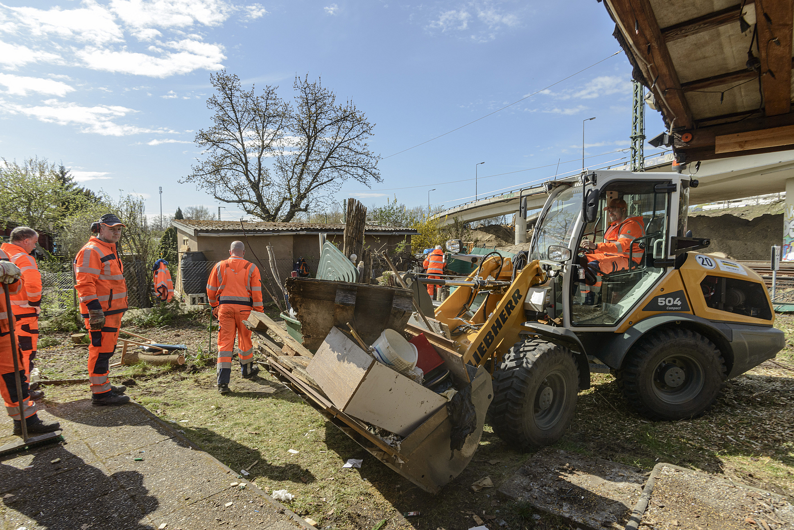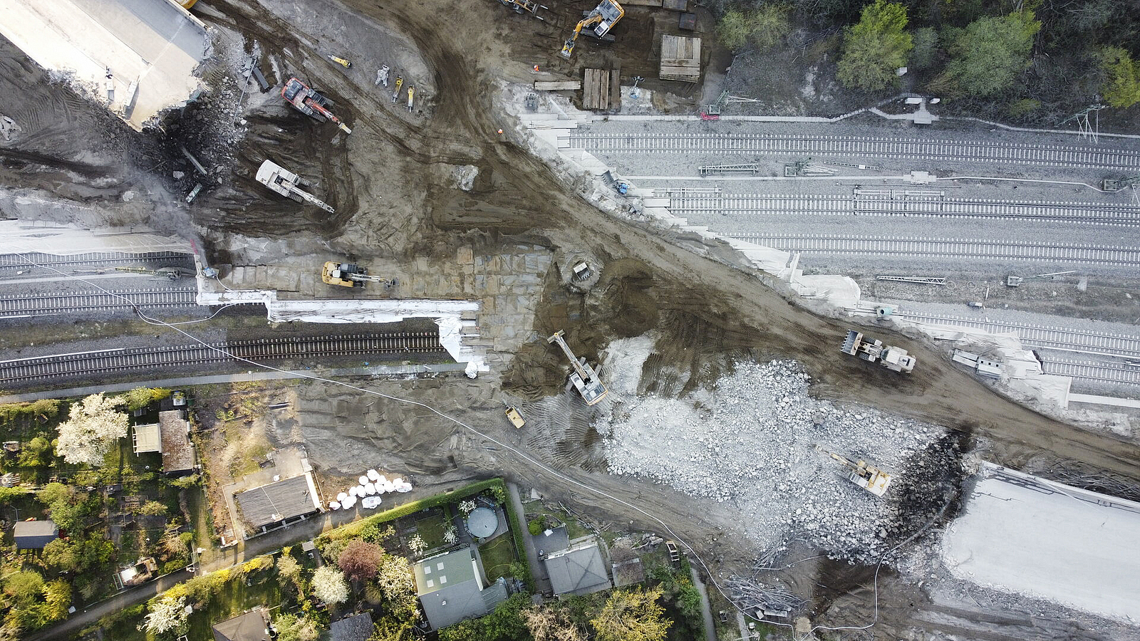 Einige der an Gleise und Brücke angrenzenden Kleingärten mussten den Abrisskolonnen unweigerlich weichen. Projektleiter Mühe von der Autobahn GmbH gelang es, mit den betroffenen Pächterinnen und Pächtern eine kurzfristige Einigung zu erzielen. "Beider Freimachung sind wir plötzlich auch auf Altlasten gestoßen. Sie ließen sich in Kooperation mit den verantwortlichen Ämtern umgehend fachgerecht entsorgen."