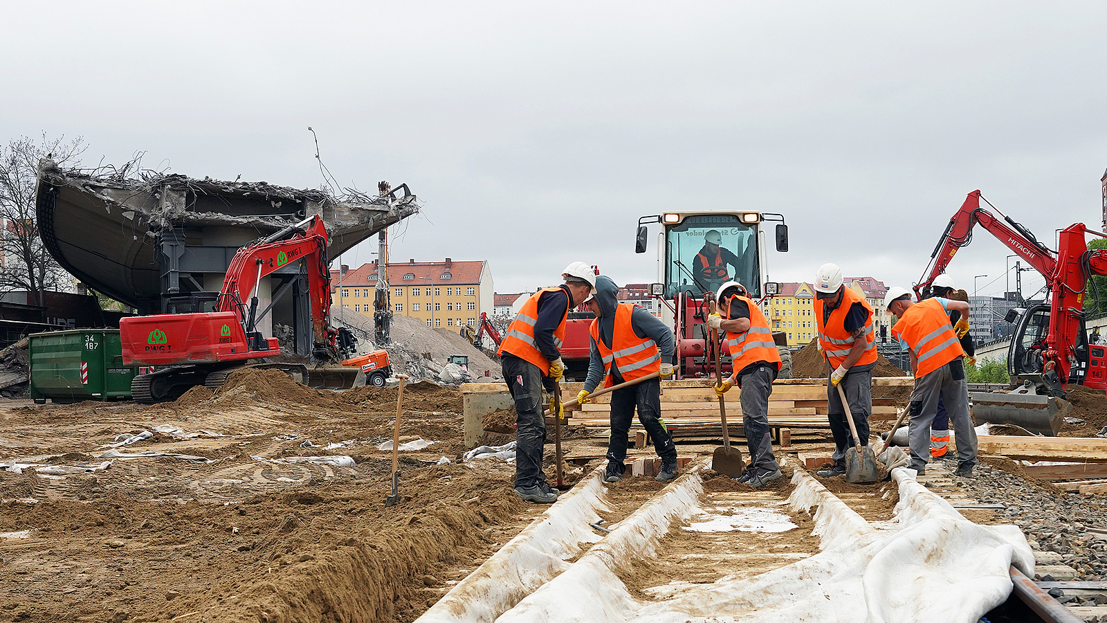 Der Schlusspunkt: Nach den eigentlichen Abbrucharbeiten stand das große Aufräumen der aufwändig gesicherten Gleisanlagen an.