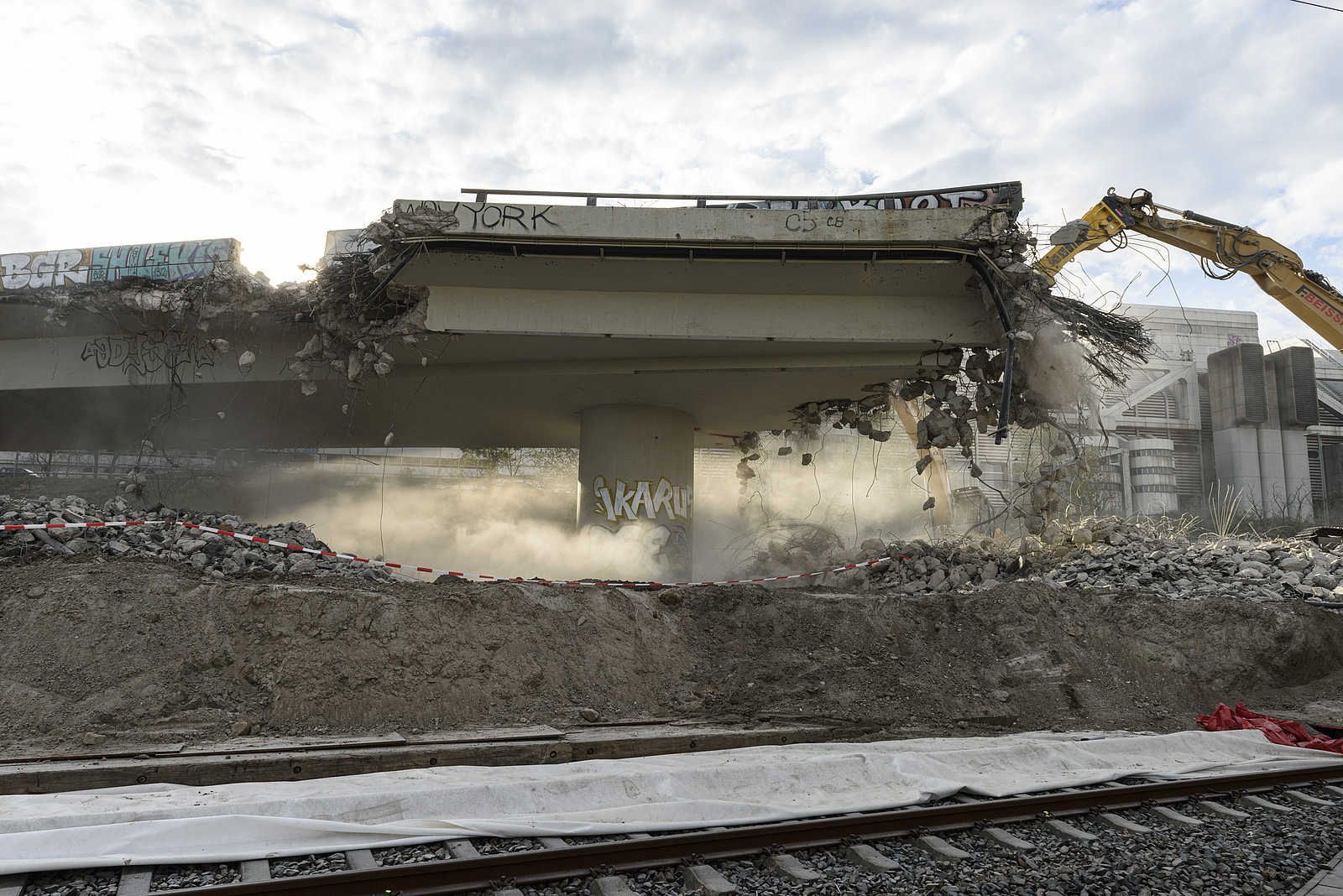 Die schnelle Räumung für die Wiederaufnahme des Bahnverkehrs war das Hauptziel des beschleunigten Abrisses der Westendbrücke.