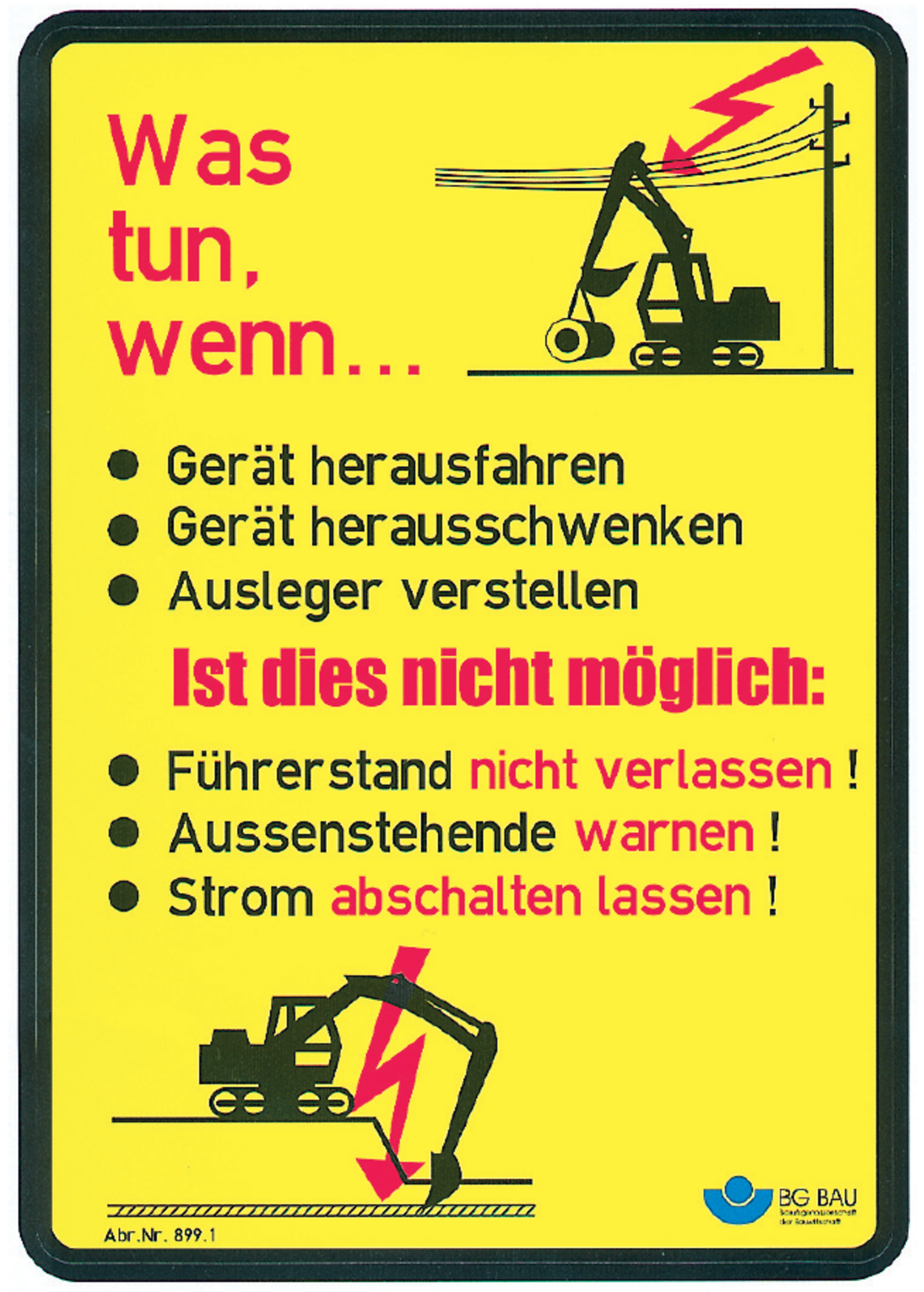 Bei Kranarbeiten kommt es immer wieder zu schweren, tödlichen Elektrounfällen, weil Beteiligte sich nicht an die vereinbarten Regeln halten. Die Unterweisung muss hier weitere Schwerpunkte setzen, die bis weit in den organisatorischen Bereich der elektrotechnischen Arbeiten reichen. Dazu gehören die Abläufe und Schnittstellen zwischen den Rollen von Anlageverantwortlichen und Arbeitsverantwortlichen von der Freischaltung über die Bahnerdung bis hin zur Freigabe bzw. zum Beginn der Arbeiten. Baumaschinen mit Hub und Schwenkeinrichtungen sollen grundsätzlich nur unter der geerdeten Fahrleitung eingesetzt werden. Ausnahmen im Einzelfall sind nur mit Zustimmung des Anlagenbeauftragten und bei Festlegung von besonderen Schutzmaßnahmen (Hindernisse, mobile Erdung der Baumaschine, nichtleitende Anschlagmittel, Hub- und Schwenkbegrenzungen) zulässig.