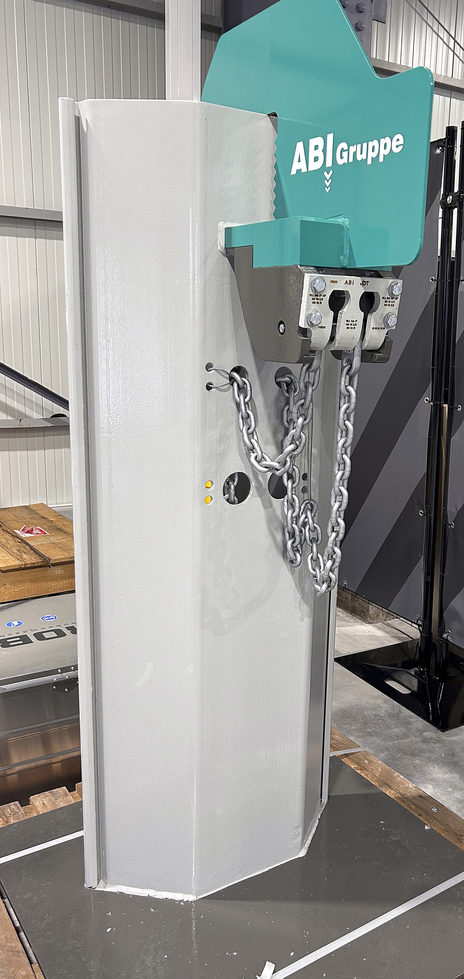 Innovatives Sicherungsmittel für Spundwandgreifer und Spundbohlen: Durch das Schlüsselkonzept wird der Sicherungsbolzen eingesteckt und zusätzlich verdreht.