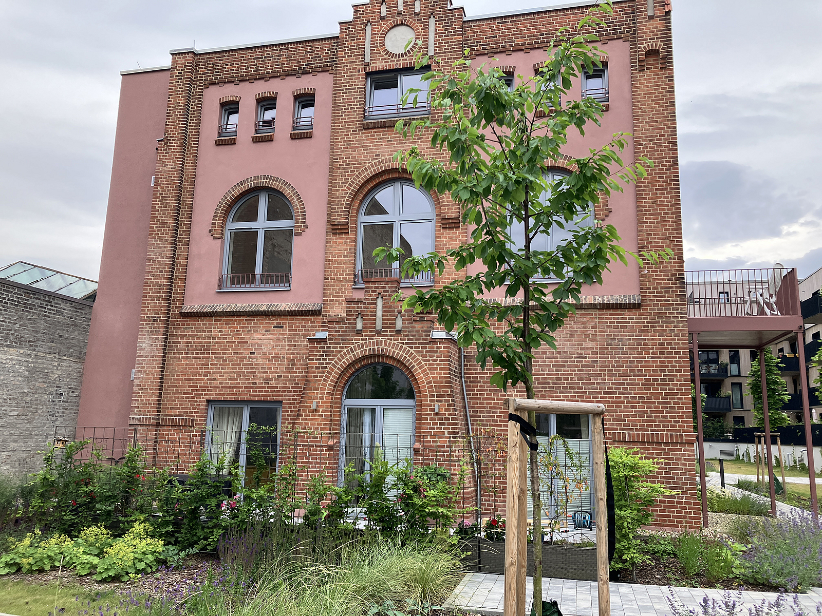 Eine Energiezentrale zur Erzeugung von Nahwärme und Strom, eine eigens geschaffene Öko-Kita sowie ein Quartierscafé und angrenzende, wohnbegleitende kleine Gewerbeeinheiten sind weitere nachhaltige und soziale Qualitäten, die das Quartier gezielt zur Umgebung hin öffnen.