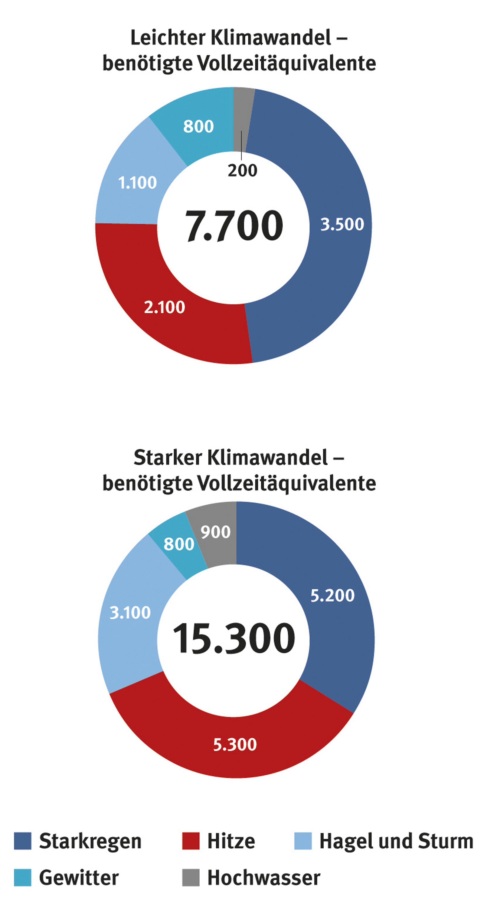 Verschiedene Auswirkungen des Klimawandel in gemäßigter (o.) und starker Ausprägung auf den Arbeitskräftebedarf in der Baubranche