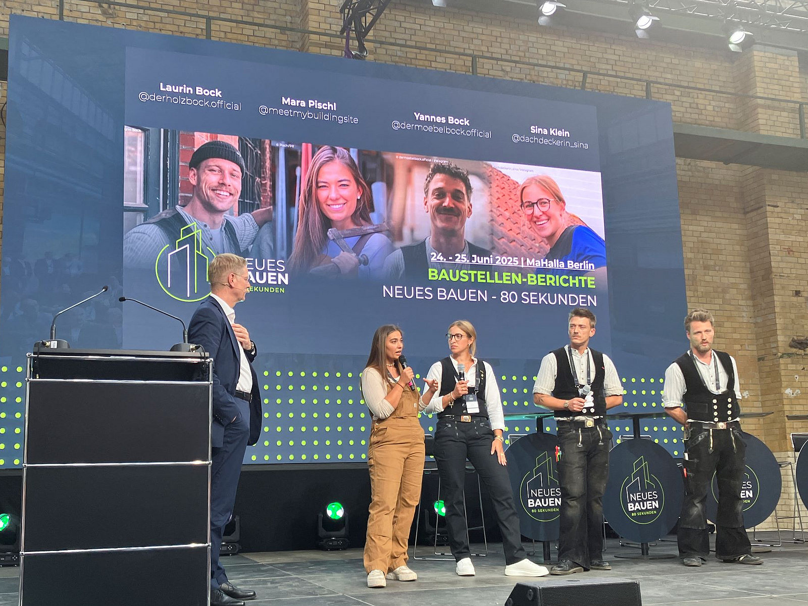 Neben den drei Baustellenbesichtigungen (Satellite Events) kamen auch die Macher der Praxis zu Wort: Vier junge Handwerkerinnen und Handwerker, die nicht nur im Beruf erfolgreich sind, sondern in den sozialen Medien eine Vielzahl von Followern hinter sich haben – und so zunehmend junge Menschen für das Handwerk begeistern können.