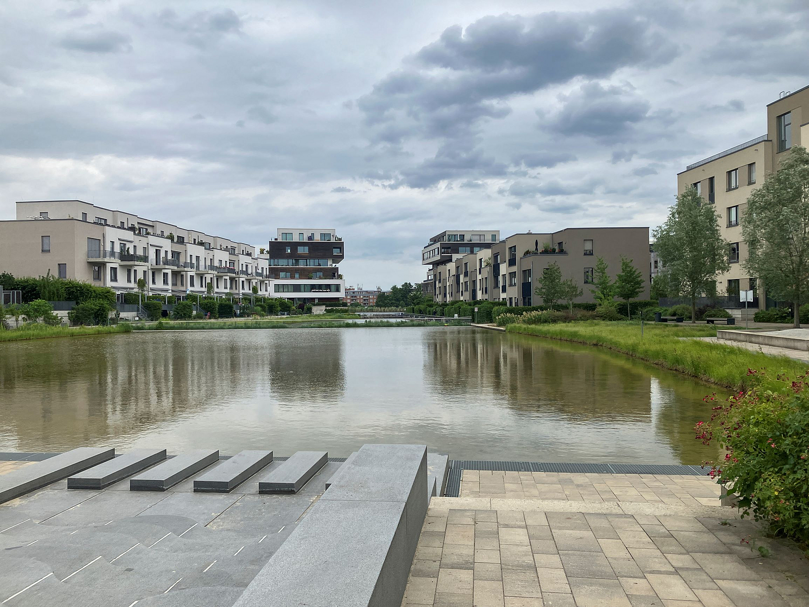 Beim Schwammstadt-Prinzip sorgen Grünzonen, Wasser- und Versickerungsflächen für einen Puffer, der das Niederschlagswasser zurückhält und kontrolliert versickern lässt. Beispielhaft umgesetzt wurde es im Quartier 52° Nord.