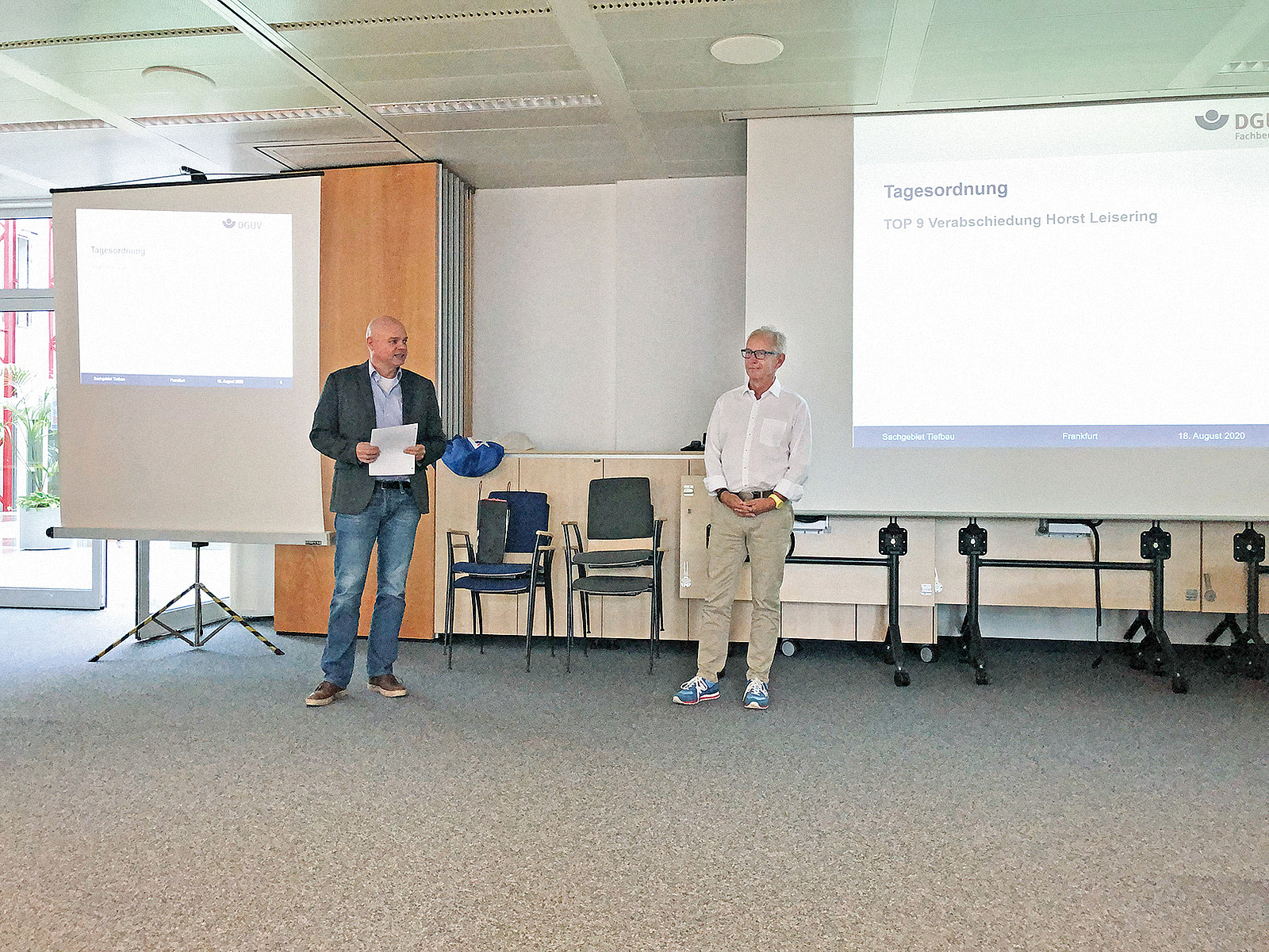 Am 18. August 2020 wurde Dipl.-Ing. Horst Leisering auf der Sitzung des Sachgebiets Tiefbau im DGUV Fachbereich Bauwesen in Frankfurt am Main verabschiedet.