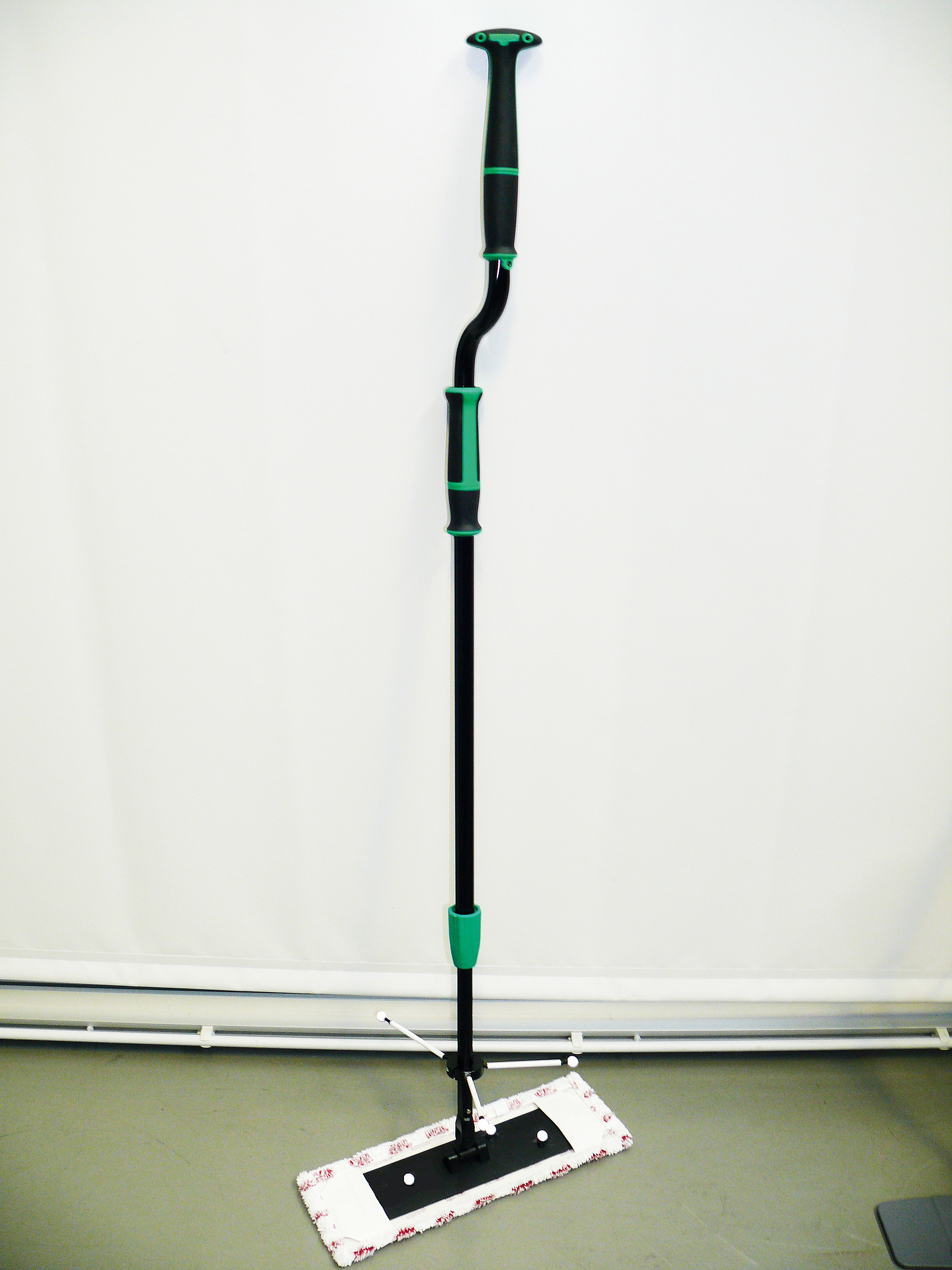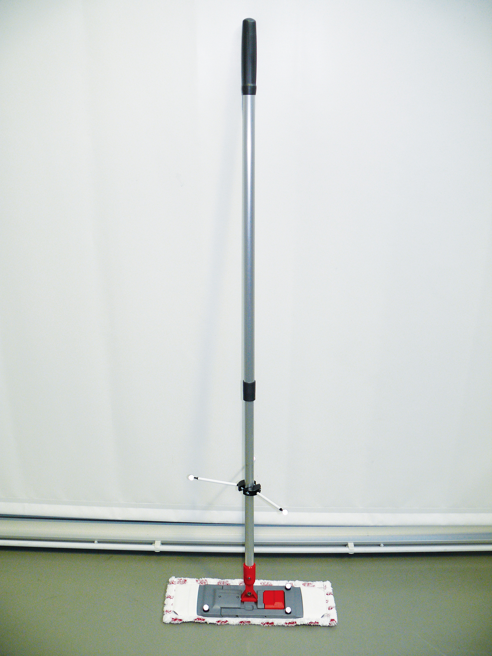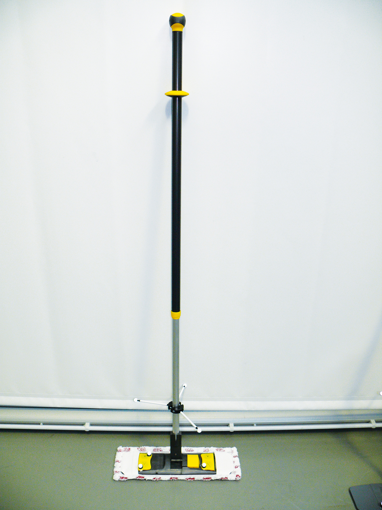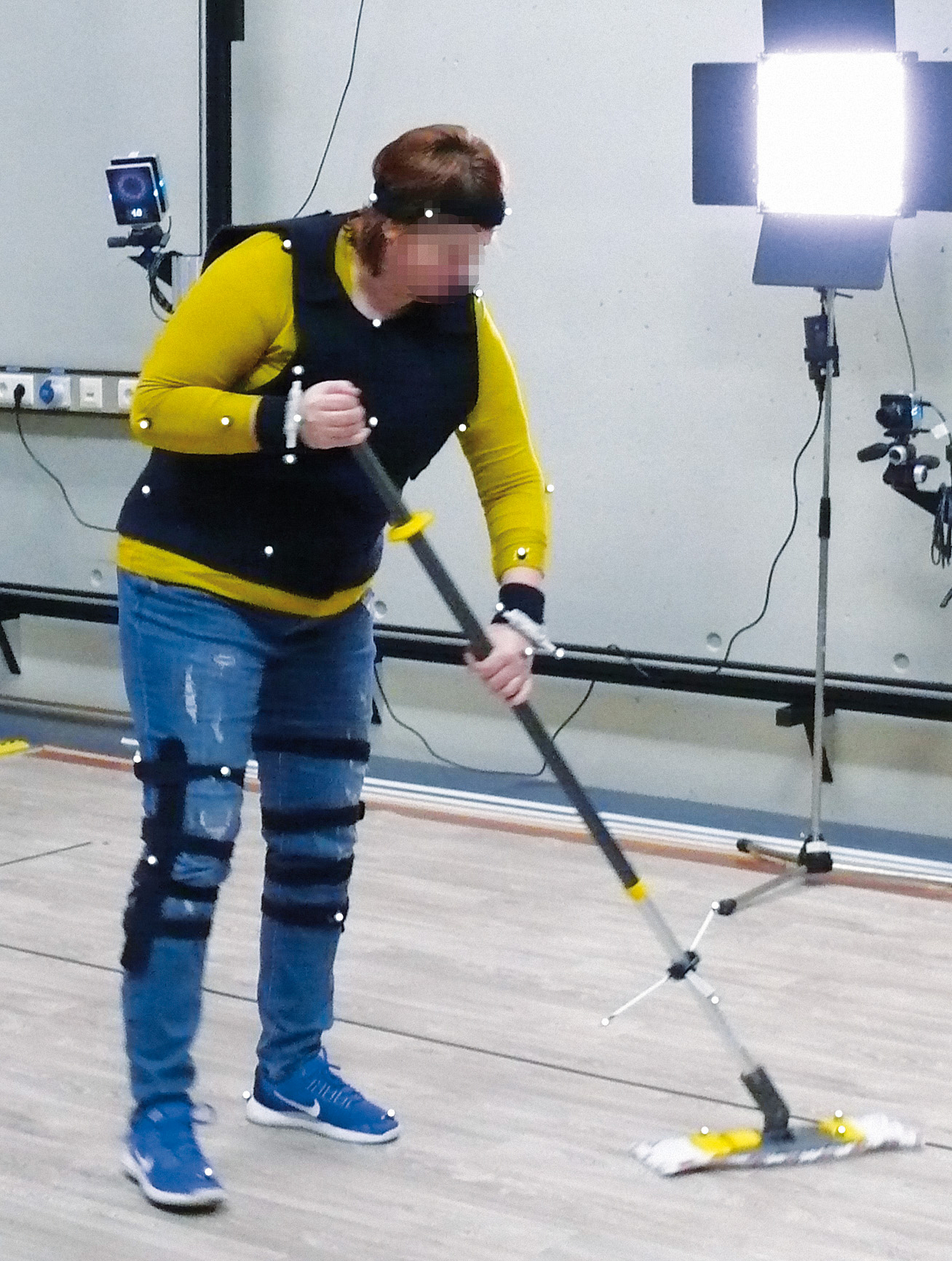 Die Aufgabe war als „Feuchtwischen“ einer definierten Bodenfläche standardisiert. Die Arbeitsgeschwindigkeit wurde den Teilnehmenden dabei selbst überlassen. Die Bahnen waren mit jedem der drei Stiele je dreimal zu wischen, wobei die Reihenfolge der Stieltypen zufällig variiert wurde. Typ und Größe des Mopps war bei allen Stielen identisch. Vor Versuchsbeginn hatten die Teilnehmenden die Gelegenheit, sich mit den unterschiedlichen Stieltypen vertraut zu machen und jeweils mindestens einmal die komplette Fläche zu wischen. Somit waren zu Versuchsbeginn für alle Probanden die gleichen Bedingungen gegeben.