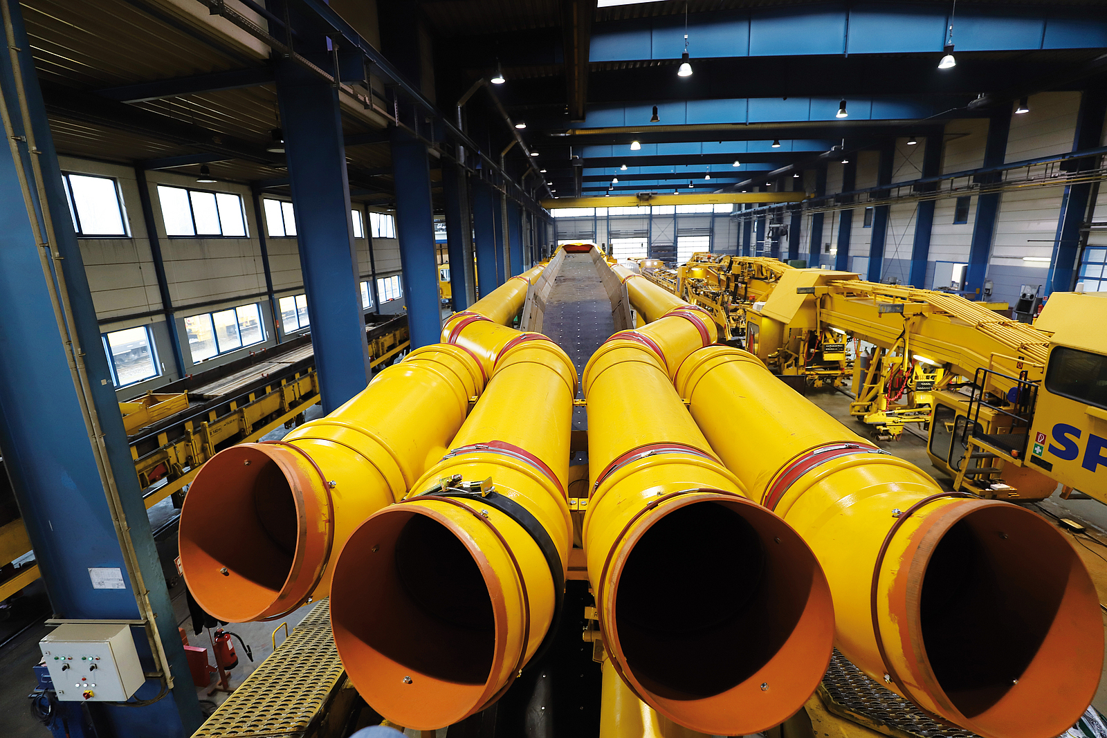 Die Zufuhr der zu reinigenden, staubelasteten Luft wird über vier KG500-Rohre (zwei je Filteranlage) sichergestellt. Ihren Ausgangspunkt nehmen die Rohre an den staubemittierenden Bereichen der RM 900 S. Im Wesentlichen sind das der Kettenbereich, das Turas-Getriebe sowie die Siebanlage mit den dazugehörigen Förderbändern. Die Rohrleitungen verlaufen oberhalb bzw. abschnittsweise an den Seiten der Bettungsreinigungsmaschine innerhalb des Lichtraumprofils. Insgesamt werden so rund 70 m der RM 900 S überbrückt unter Verwendung von ca. 300 m KG500-Rohr. Hierfür wurden zahlreiche Modifikationen an der Maschine durchgeführt. Einerseits um die Rohleitungen mit entsprechender Stabilität montieren zu können, andererseits mussten bestimmte Maschinenbereiche, z. B. die Abgasanlage, angepasst werden, um Platz zu schaffen.