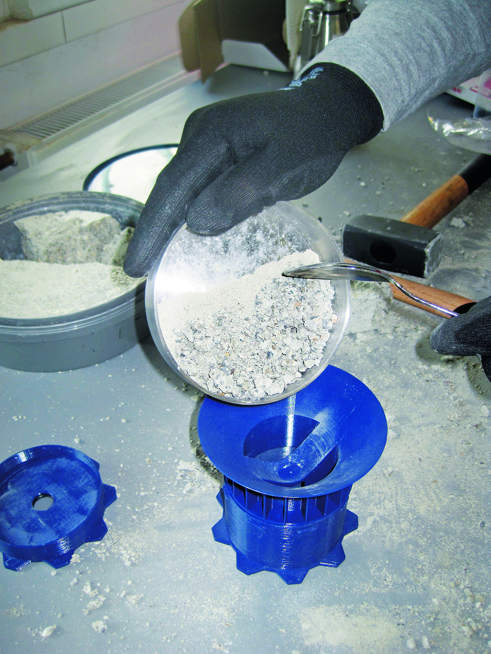 Grundsätzlich ist darauf zu achten, dass bei der Probenvorbereitung weder Feuchtigkeit verloren geht noch Feuchtigkeit von außen zugeführt wird. Deshalb müssen Probenentnahme und -vorbereitung so schnell wie möglich durchgeführt werden. Für die Probenentnahme dürfen keine Verfahren eingesetzt werden, die mit starker Wärmeentwicklung oder mit einem Wassereintrag verbunden sind.
