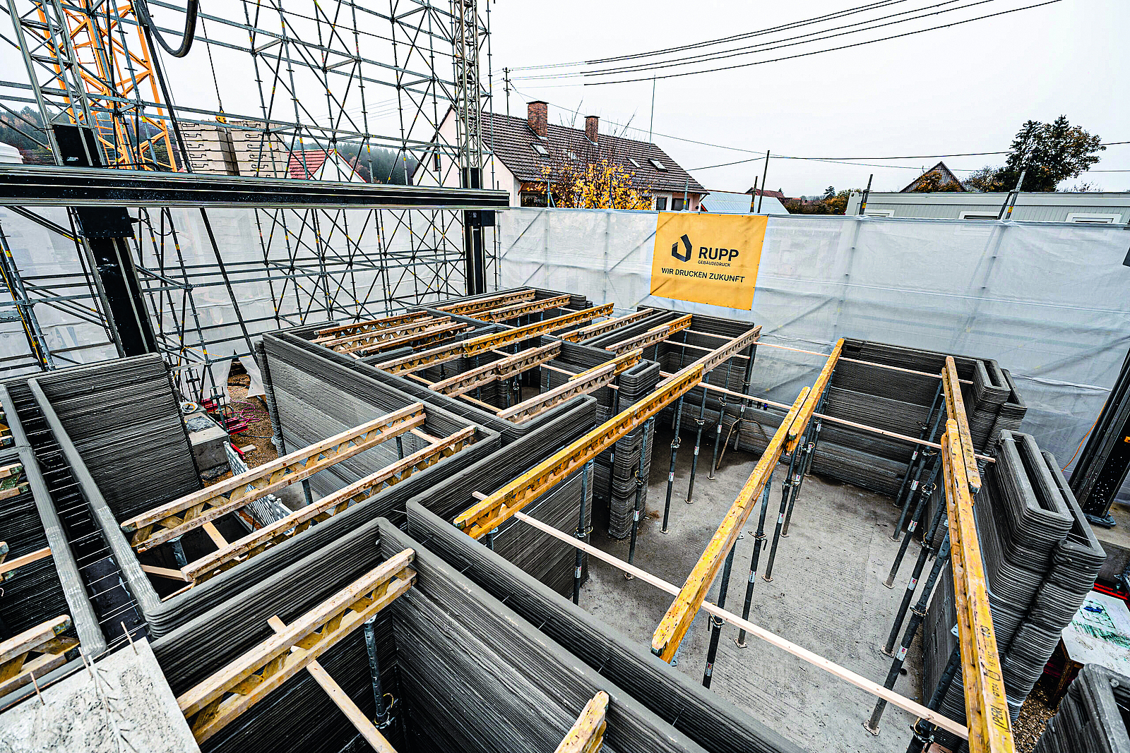 Für ihn war die neue Technik im Bauunternehmen seines Vaters bis dato eher eine „coole Spielerei“. Aber durch das Mehrfamilienhaus-Projekt haben sich Fabian Rupp und sein jüngerer Bruder Sebastian von den Möglichkeiten des 3-D-Drucks begeistern lassen – eine reine Druckzeit von 72 Stunden und eine Gesamtbauzeit von neun Monaten für ein 380 m2 großes Mehrfamilienhaus auf drei Etagen sprechen für sich – und treiben das Thema 3-D-Hausdruck im Familienbetrieb voran.