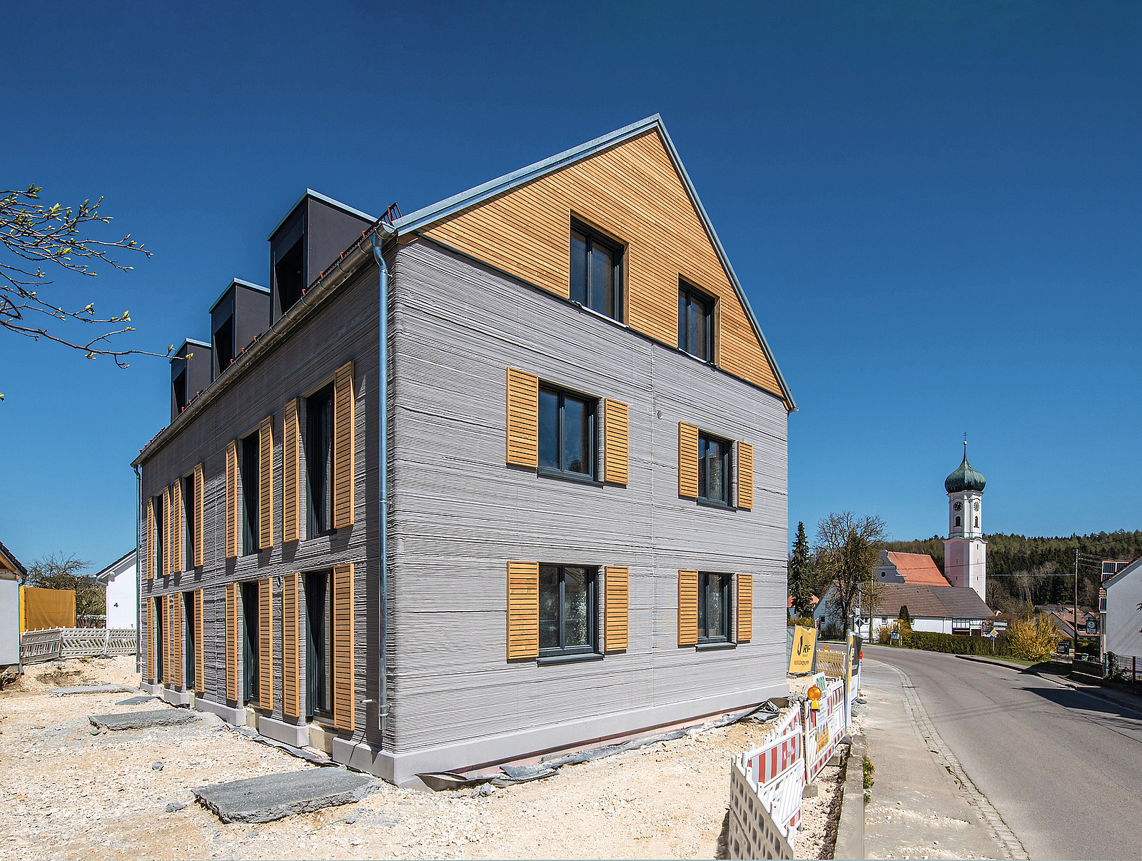 Selten sind Tradition und Moderne so nahe wie in Wallenhausen, einem Ortsteil von Weißenhorn im Landkreis Günzburg: auf der einen Seite eine Kirche aus dem 18. Jahrhundert und auf der anderen Seite, schräg gegenüber, ein Mehrfamilienhaus aus 3-D-Betondruck. Auch für das Familienunternehmen Rupp, das als Bauherr und ausführendes Bauunternehmen erstmals mit 3-D-Druck in Kontakt kam, ist dies der Aufbruch in eine neue Zeit.
