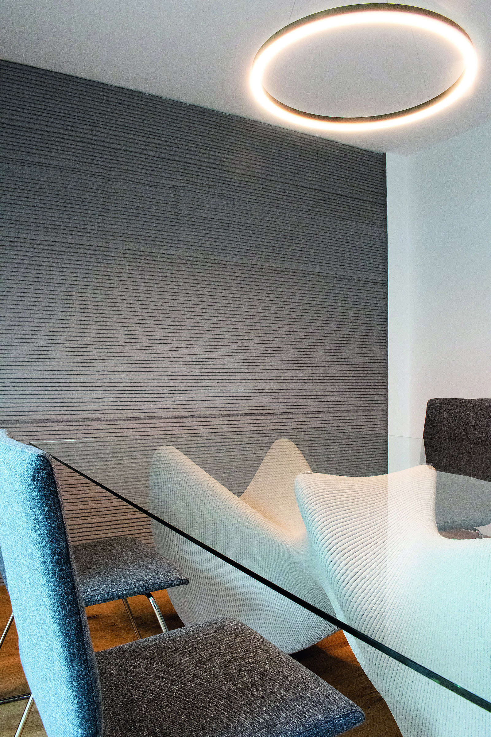 Nach fünf Monaten Ausbauzeit haben im Juli 2021 die ersten Mieterinnen und Mieter das Mehrfamilienhaus bezogen und sind von ihrem neuen Zuhause ganz angetan. „Ich fand es total spannend, als einer der Ersten in einem Haus aus einem 3-D-Drucker zu wohnen“, erzählt Felix Jehle, der eine Zweizimmerwohnung in dem Mehrfamilienhaus im Ortskern bezogen hat. „Eigentlich lebt man hier aber nicht anders als in jedem anderen modernen Neubau. Nur an der Außenfassade des Hauses und im Wohnzimmer, wo man als Designelement noch ein Stück der gedruckten Wand unverputzt sehen kann, erkennt man, dass das Haus anders ist als alle anderen.“