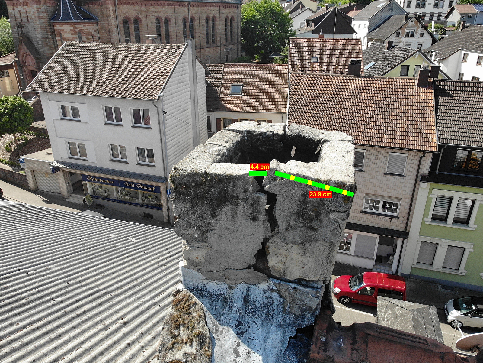 Für die Dokumentation des Schadensausmaßes an der Stadtkirche Langen erwiesen sich Inspektionsdrohnen als effizientes und sicheres Mittel.