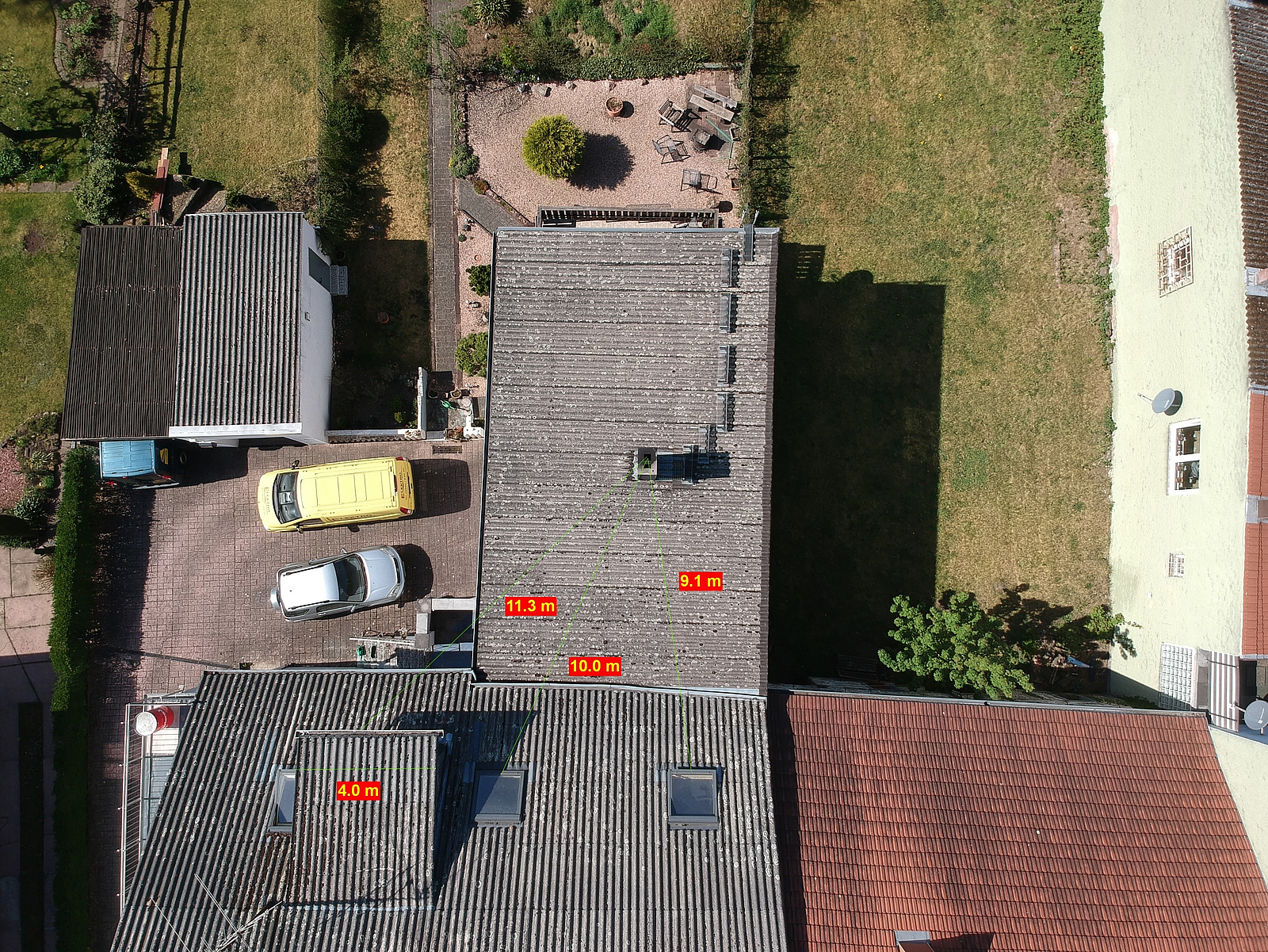 Für alle diese Arbeiten ist es notwendig, Dächer oder andere hochliegende Flächen zu betreten bzw. dort zu arbeiten. Um vorab einen Überblick über die Beschaffenheit des Dachs und der installierten Anlagen zu erlangen und bei Bedarf geeignete Maßnahmen anzuregen, setzt Eric Scherer zur Prüfung der Sicherheitsanlagen bzw. zur sicheren Durchführung der Schornsteinfegerarbeiten seit mehr als fünf Jahren Drohnen ein.