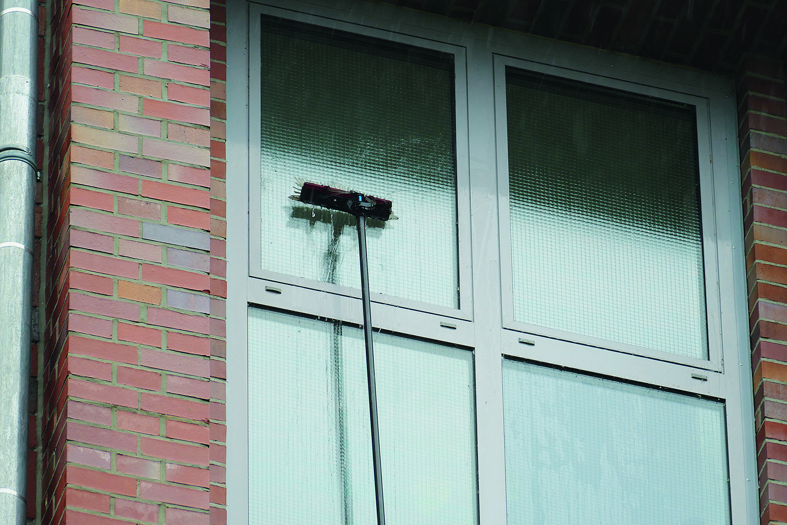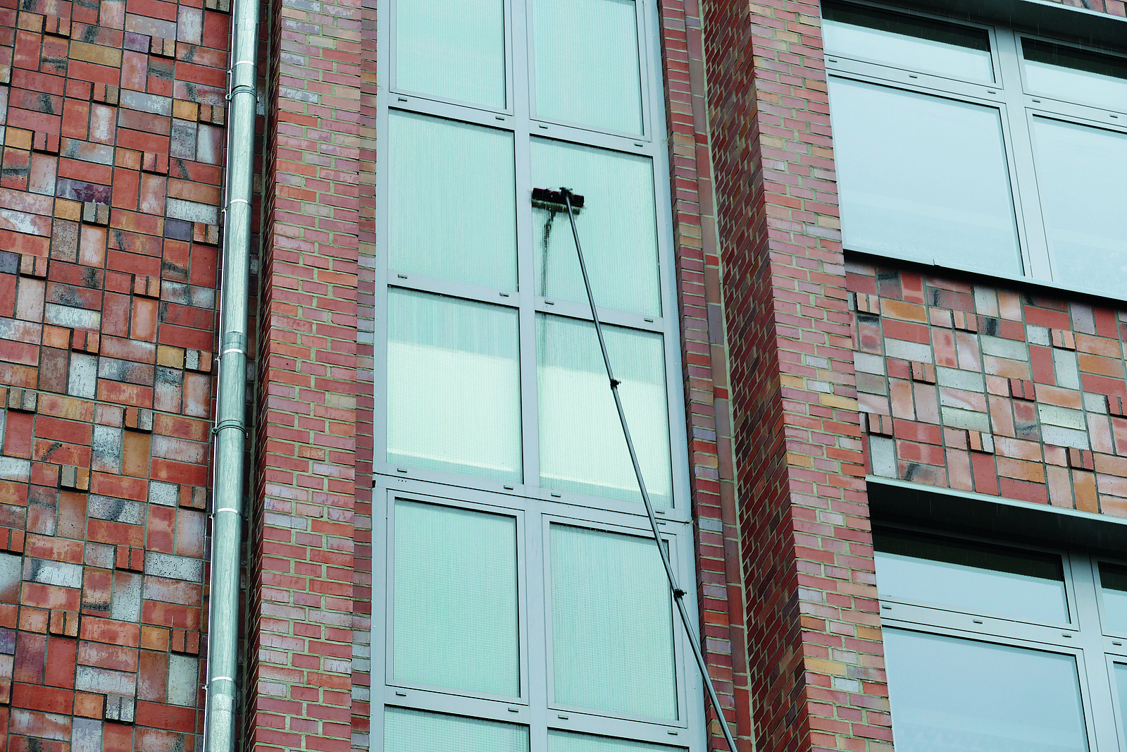 Der größte Pluspunkt der Osmose-Reinigung ist jedoch, dass Glas -und Fassadenflächen, die aufgrund ihrer Lage oder ihrer Höhe normalerweise schwer zugänglich wären, bequem über das Teleskopstangen-System erreicht werden können – ohne Aufstiegshilfen wie Leitern und Gerüste. Damit sind Reinigungsarbeiten bei laufendem Betrieb und Höhen über zehn Meter möglich.