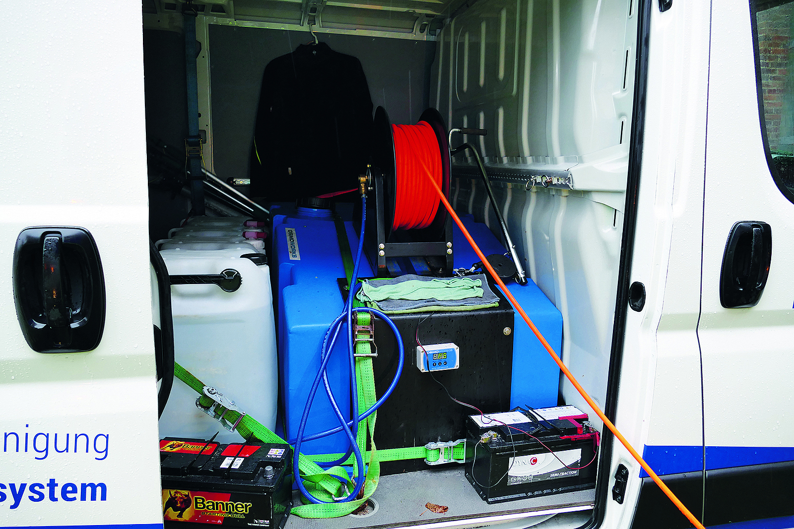 Die Tanks mit dem aufbereiteten Reinwasser sind im Fahrzeug untergebracht, von hier werden die Teleskopstangen-Systeme befüllt.