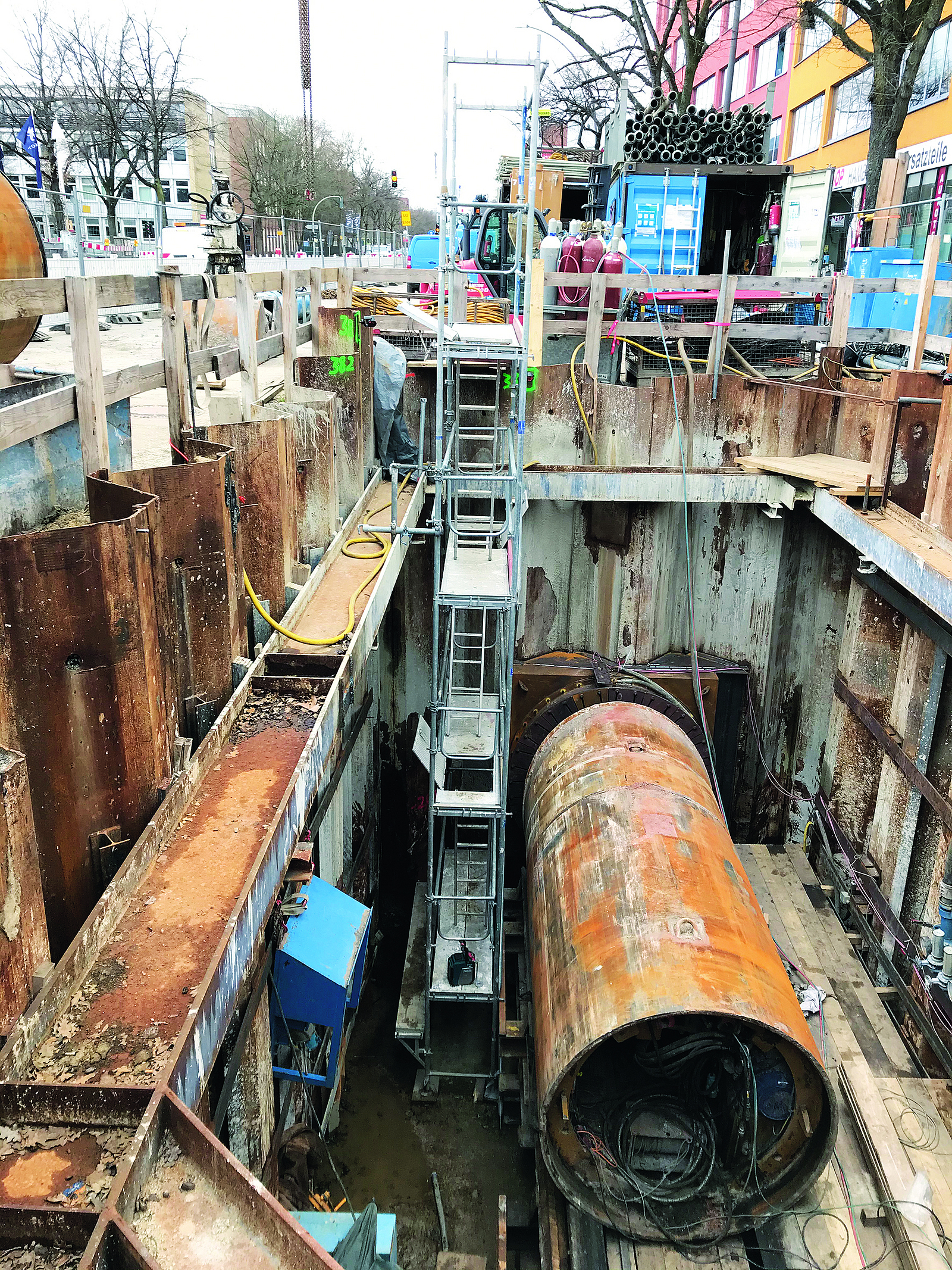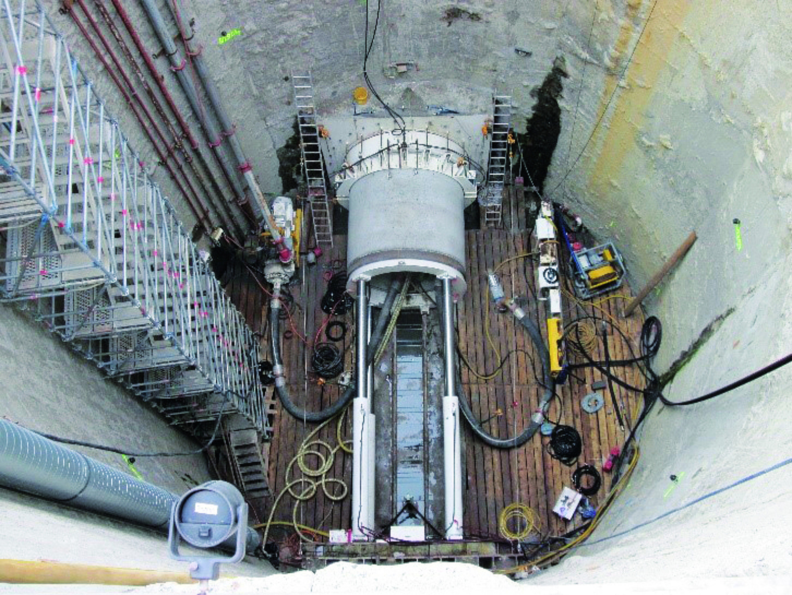 Bei der Planung und Ausführung von Rohrvortriebs- und Tunnelbauarbeiten in innerstädtischen Bereichen tritt jedoch häufig das Problem auf, dass in der Planungsphase die Abmessungen der Start-, Ziel- und Zwischenbaugruben/-schächte im Hinblick auf eine sichere Gestaltung der Zugänge zu klein dimensioniert werden. Dies geschieht aus verschiedenen Beweggründen: zum einen, damit der öffentliche Verkehrsraum durch die Baumaßnahme so wenig wie möglich beeinflusst wird, und zum anderen, um Bodenaushub einzusparen und den Aufwand für die notwendige Baugruben- und Schachtsicherung so gering wie möglich zu halten.