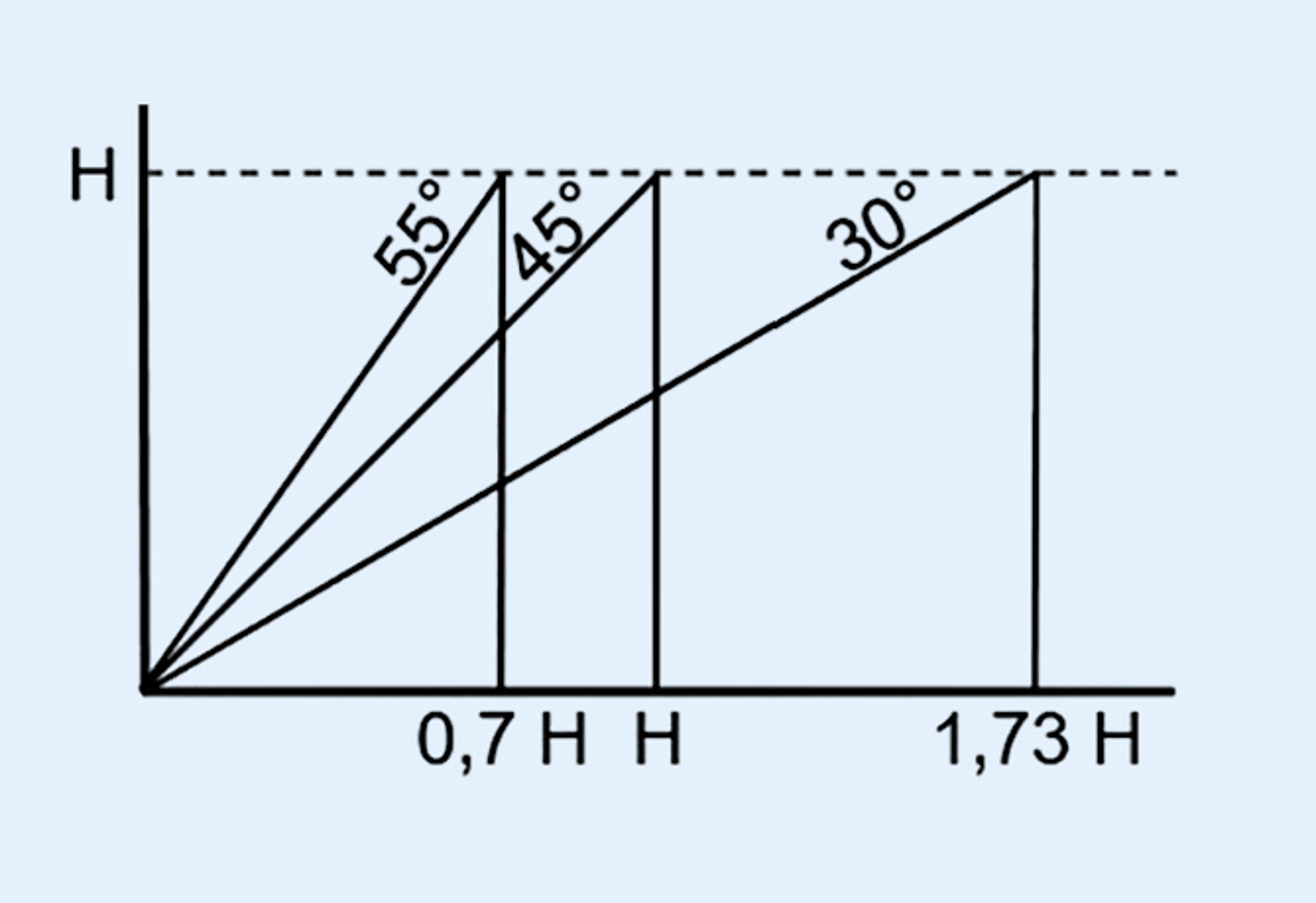 Bautreppen sind für Schächte ungeeignet und kommen aufgrund ihres Platzbedarfs eher für flachere Baugruben infrage. Bei Bautreppen kann die Neigung zwischen 30° und 55° variieren.[3] Bei der maximal möglichen Neigung ergibt sich somit ein Platzbedarf von rd. 70 % der Aufstiegshöhe (siehe Abb. 3). Die für Verkehrswege erforderliche Mindestbreite von 0,50 m ist einzuhalten.