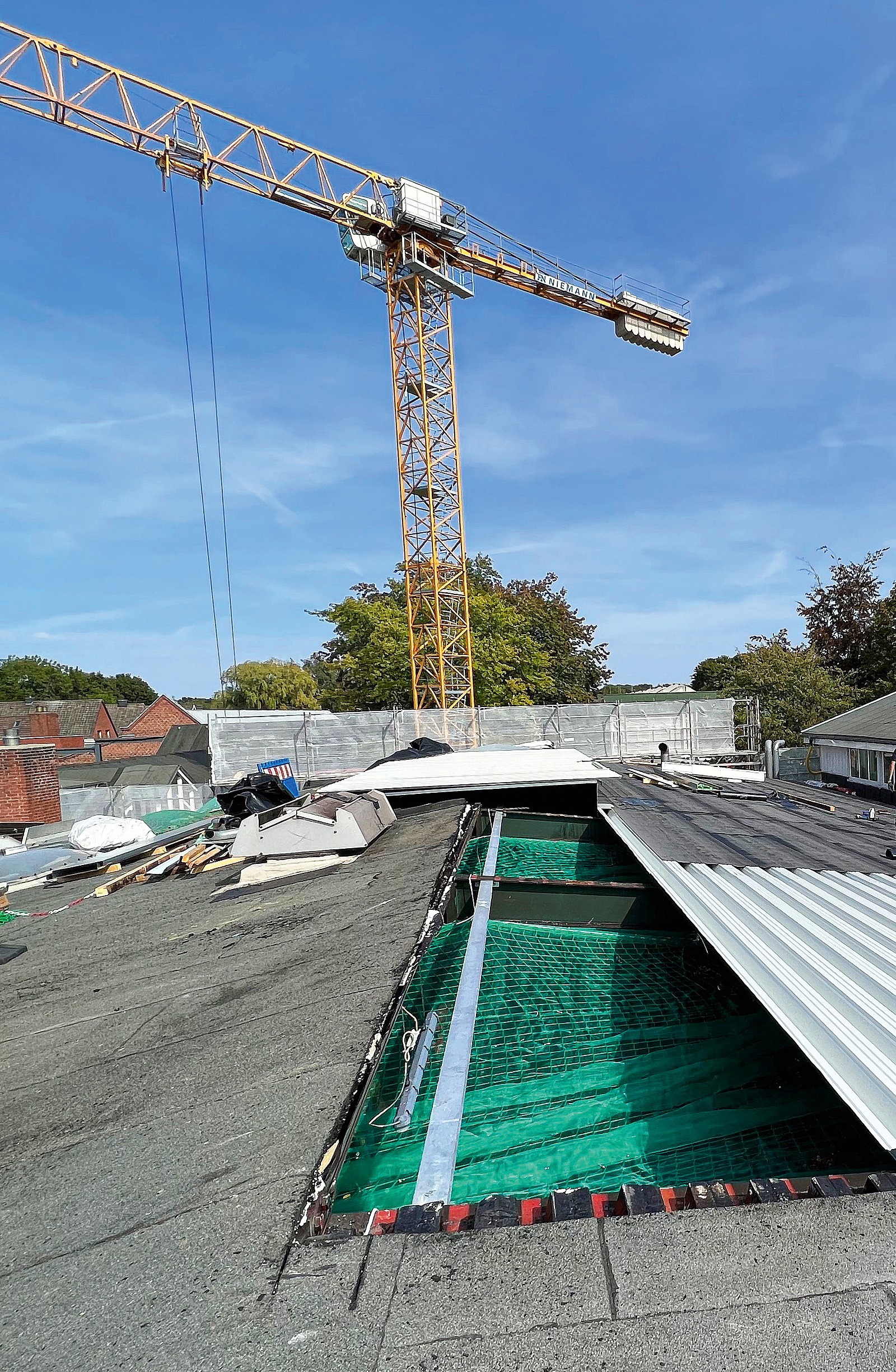 Zwei Dächer der Produktionshallen der J. P. Sauer & Sohn Maschinenbau GmbH, als Teil der Dieter Murmann Beteiligungsgesellschaft (DMB), in Kiel-Friedrichsort sind in die Jahre gekommen und bedürfen einer umfassenden Sanierung. Im Rahmen dieser Modernisierung sollen die Hallendächer sowohl statisch ertüchtigt als auch energetisch saniert werden. Da die Arbeiten auf dem Dach bei laufendem Produktionsbetrieb stattfinden, musste das ausführende Dachdeckerunternehmen besondere Herausforderungen beim Arbeitsschutz meistern.