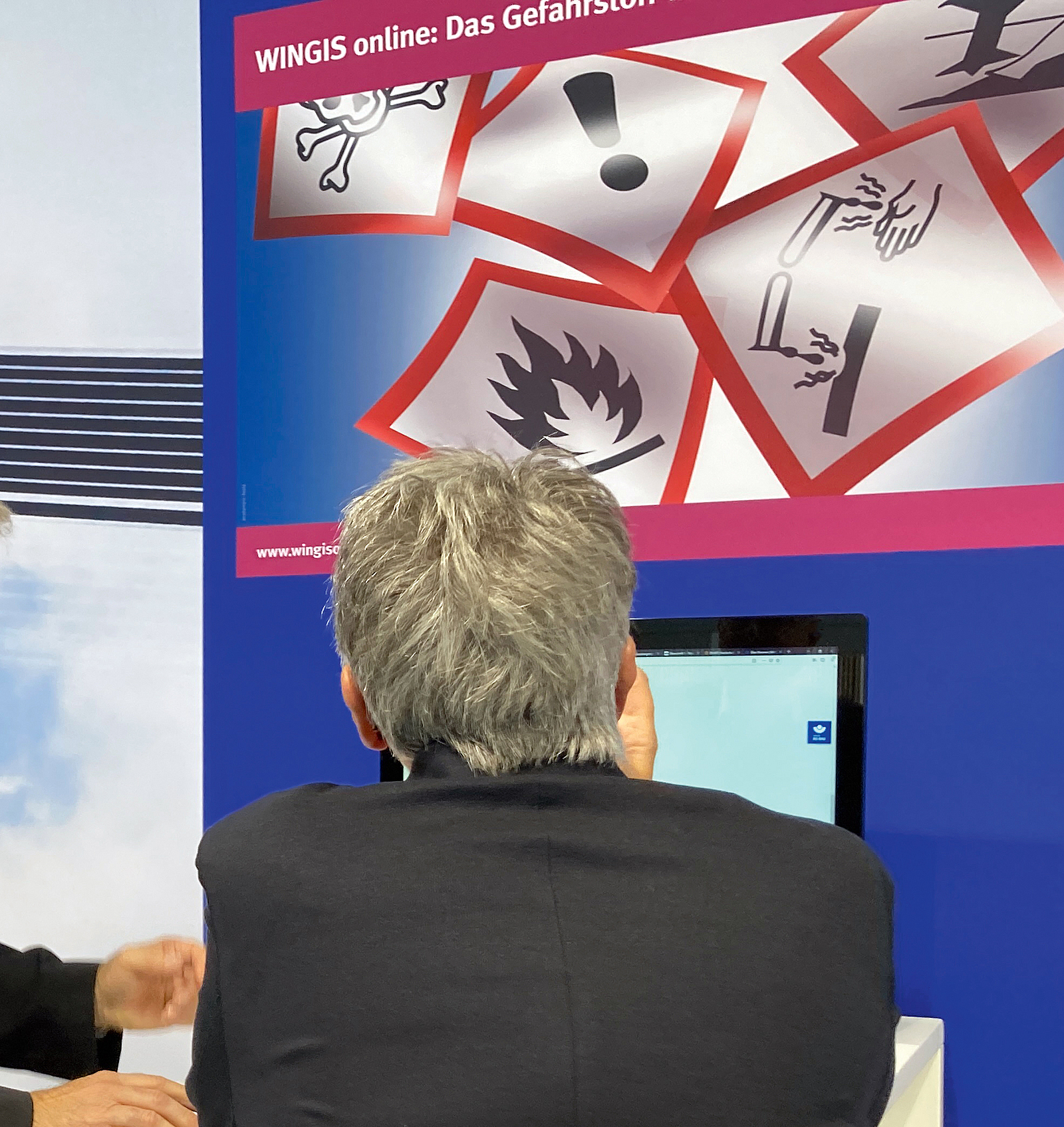 Gezeigt wurde z. B., wie mit Hubarbeitsbühnen, Podesttreppen und Teleskopstangensystemen sicher in der Höhe gearbeitet werden kann. In diesem Zusammenhang erläuterte das Expertenteam am Stand, wie die Anschaffung dieser und anderer sicherer Arbeitsmittel über das Arbeitsschutzprämienprogramm der BG BAU gefördert wird. Des Weiteren konnten Interessierte erfahren, welche Möglichkeiten des Hautschutzes es gibt und worauf z. B. bei der Wahl von Handschuhen zu achten ist. Ein großes Thema war auch der Umgang mit Gefahrstoffen bei Reinigungsarbeiten. Unterstützung dabei bietet WINGIS, das Gefahrstoffinformationssystem der BG BAU, das umfangreiche Informationen für Tätigkeiten mit Chemikalien beim Bauen, Renovieren und Reinigen samt Musterbetriebsanweisungen bereithält. Darüber hinaus beteiligte sich die BG BAU mit drei Vorträgen am Rahmenprogramm „CMS Praxisforum“.