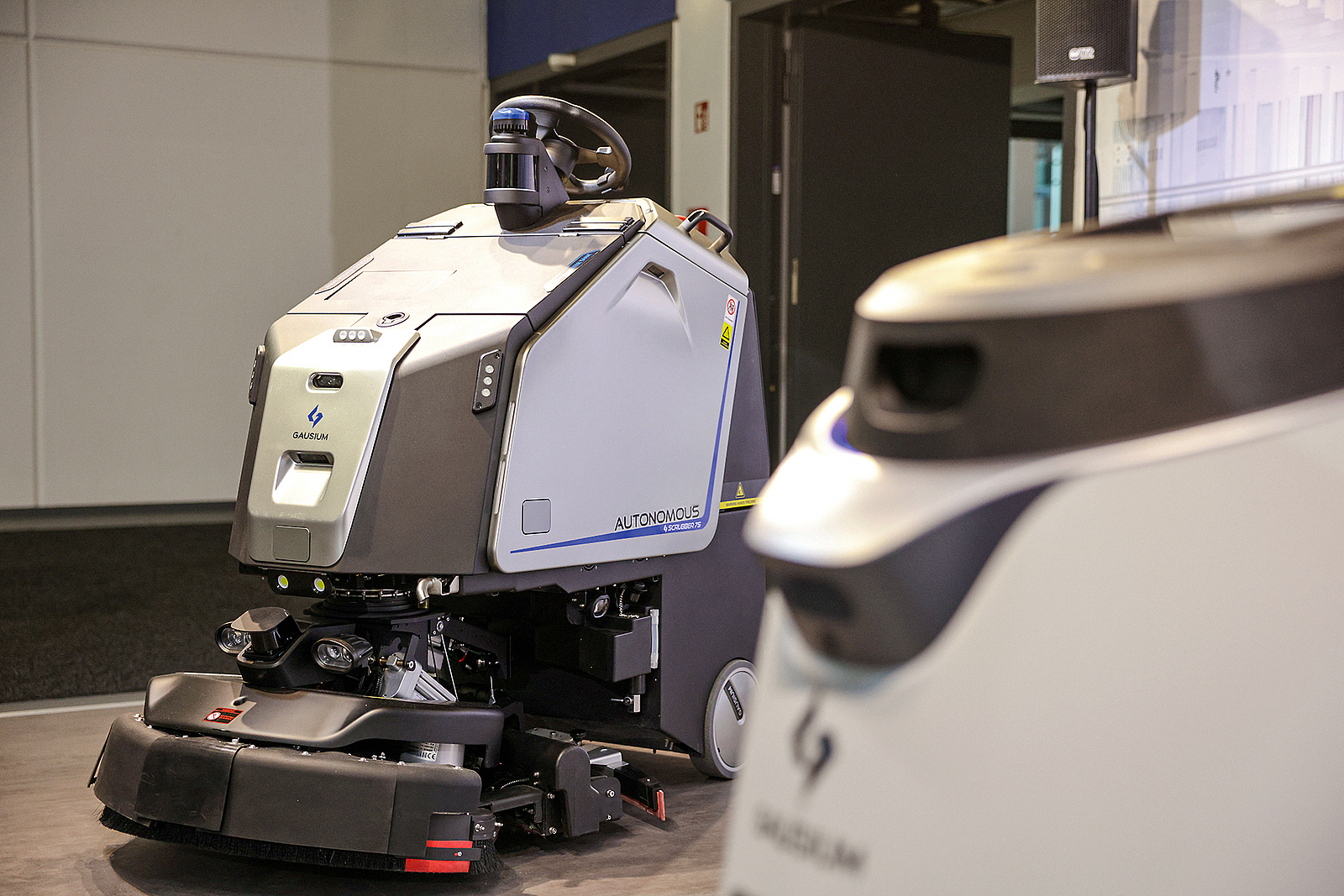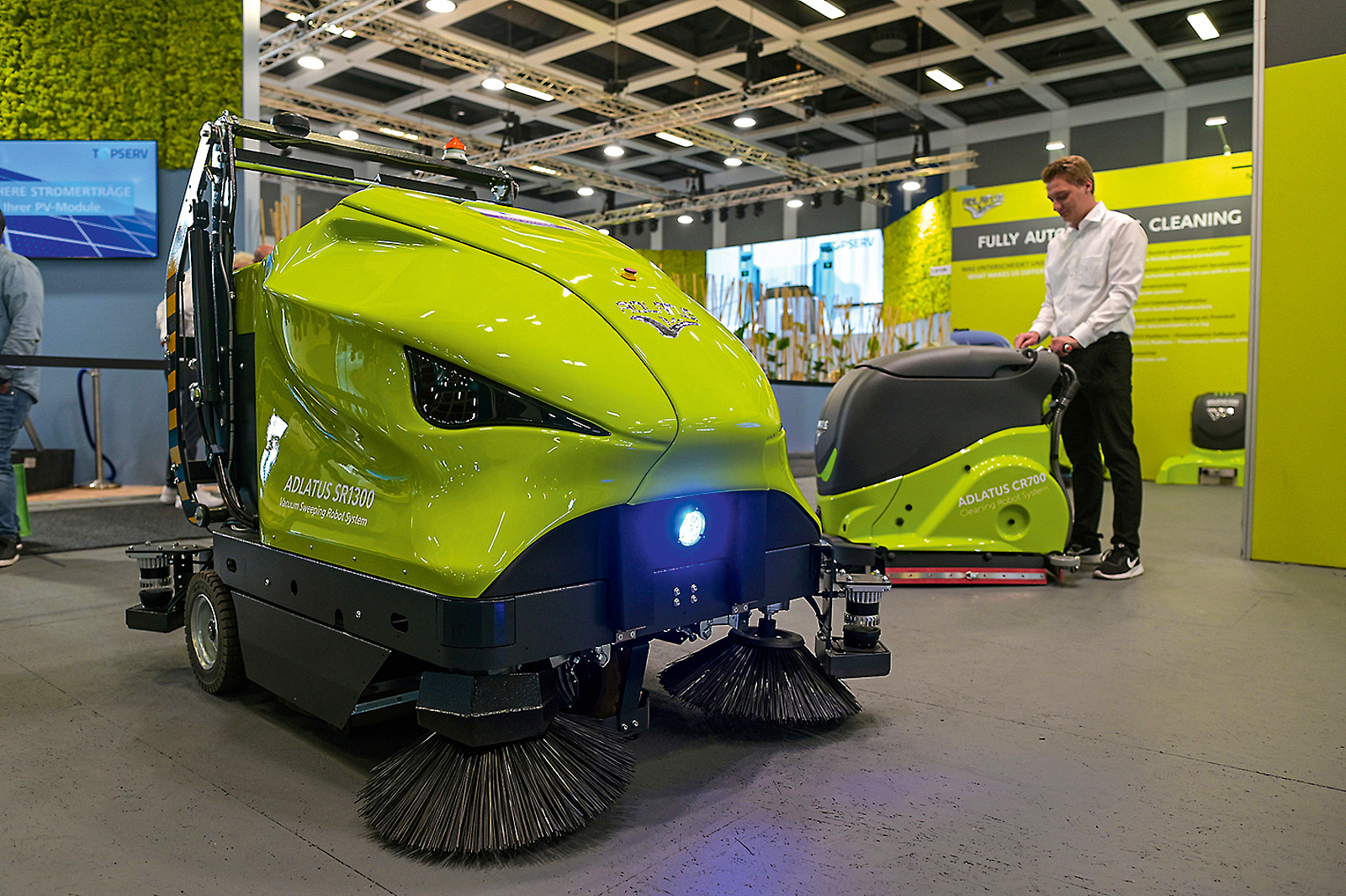 Wie sich die Branche in den vergangenen Jahren gewandelt hat, zeigte sich auch anhand der vorgestellten Reinigungsroboter, die sowohl Zeit als auch Ressourcen sparen können. So wie z. B. der „Scrubber 50 Pro“ der Firma Gausium, der den Purus Innovation Award (PIA) in der Kategorie Großmaschinen gewann. Er kann dank künstlicher Intelligenz u. a. Schmutzpunkte selbstständig erkennen und so seine Effizienz steigern. Außerdem braucht das Gerät wenig Wasser und kann es sogar recyceln. Beim runden Saugroboter „KIRA CV 50“ von Alfred Kärcher zeigen farbige Leuchtstreifen die Aktivität des Roboters an und machen ihn auch in dunklen Räumen sichtbar. Der „Scrubmaster B75 i“ mit 3-D-Kamerasystem und zertifizierten LiDAR-Sensoren von Hako lässt sich individuell nach Kundenwunsch anpassen, da die Software im Unternehmen selbst entwickelt wurde.
