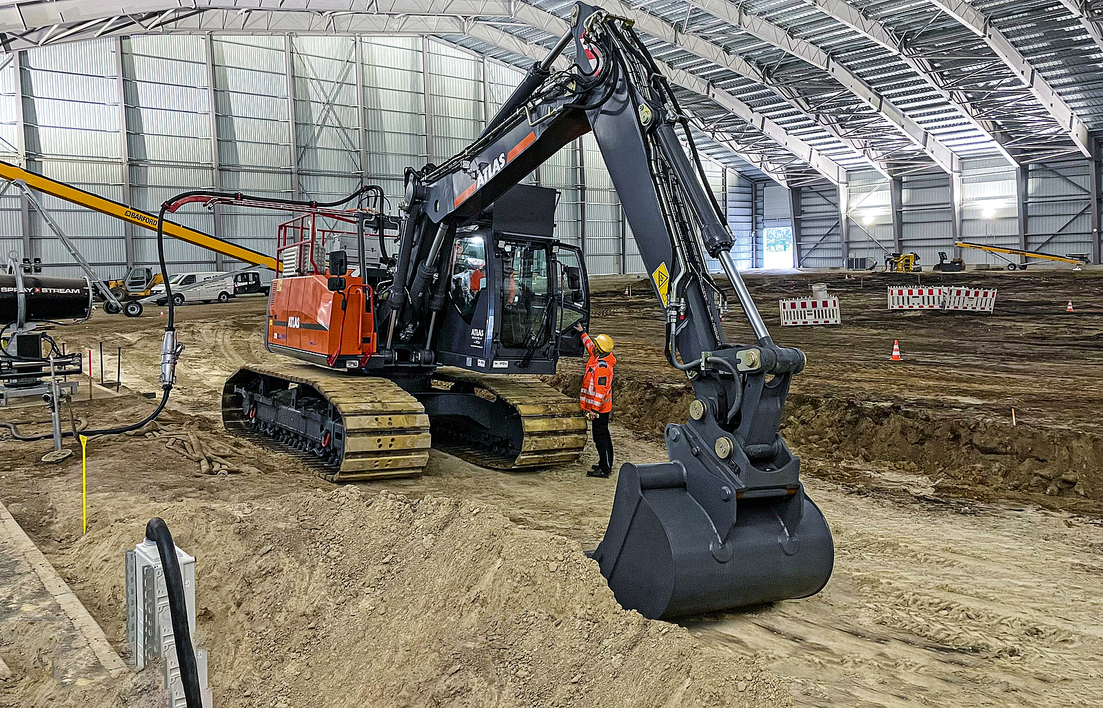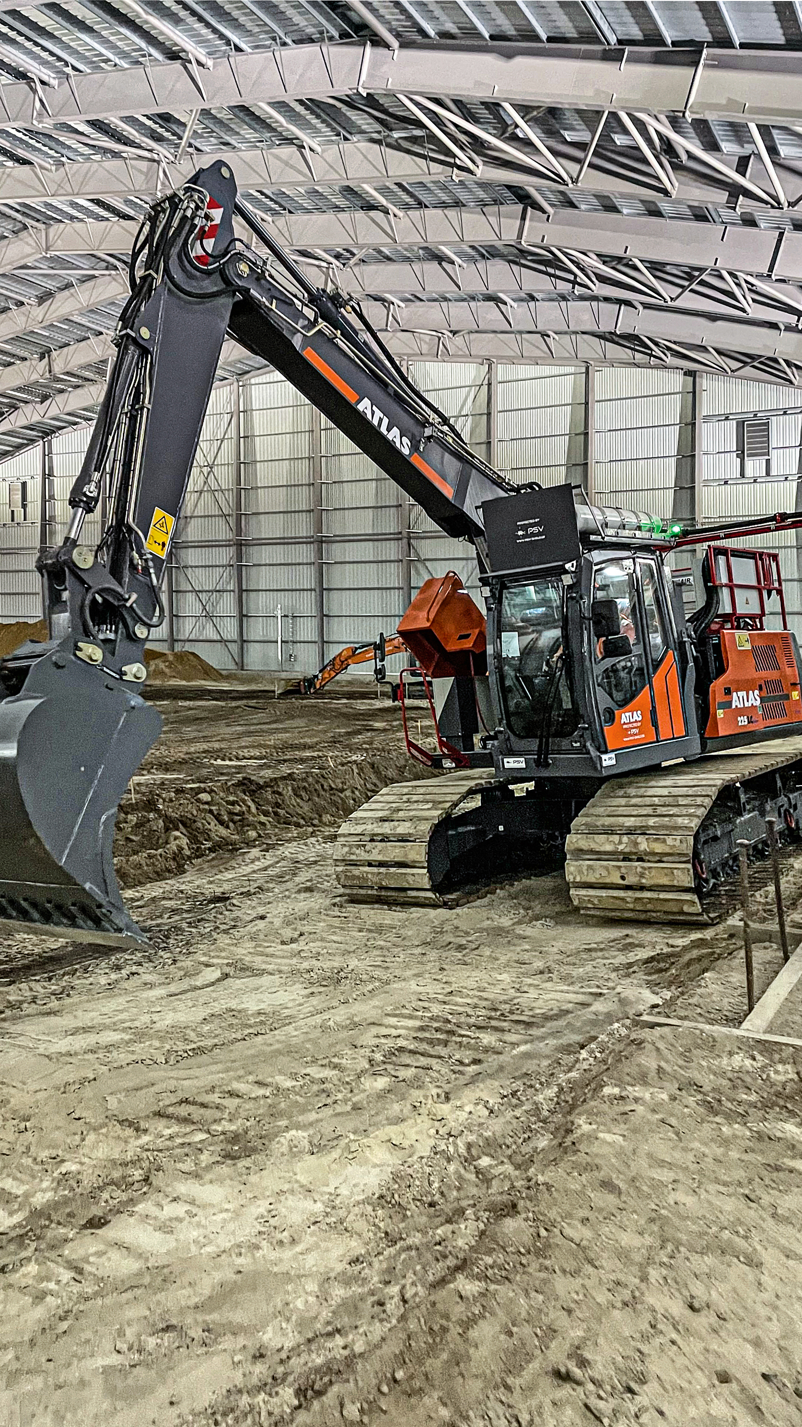 Damit der Fahrer des Hybrid-Kettenbaggers (Diesel- und Elektroantrieb) hiervon losgelöst tätig werden kann, betritt er seinen Bagger über eine spezielle Schleuse. In Verbindung mit der Panzerung und der Schutzbelüftung kann er so seiner Tätigkeit ohne Reduzierung seines Schutzes nachkommen. Für die Arbeiten bei der Kampfmittelräumung nutzt der Bagger, der für die Bergungsarbeiten als Sonderanfertigung angeschafft wurde, einen Elektro-Anschluss. Für die Fahrten zur Schleuse besitzt er zudem einen Dieselmotor.