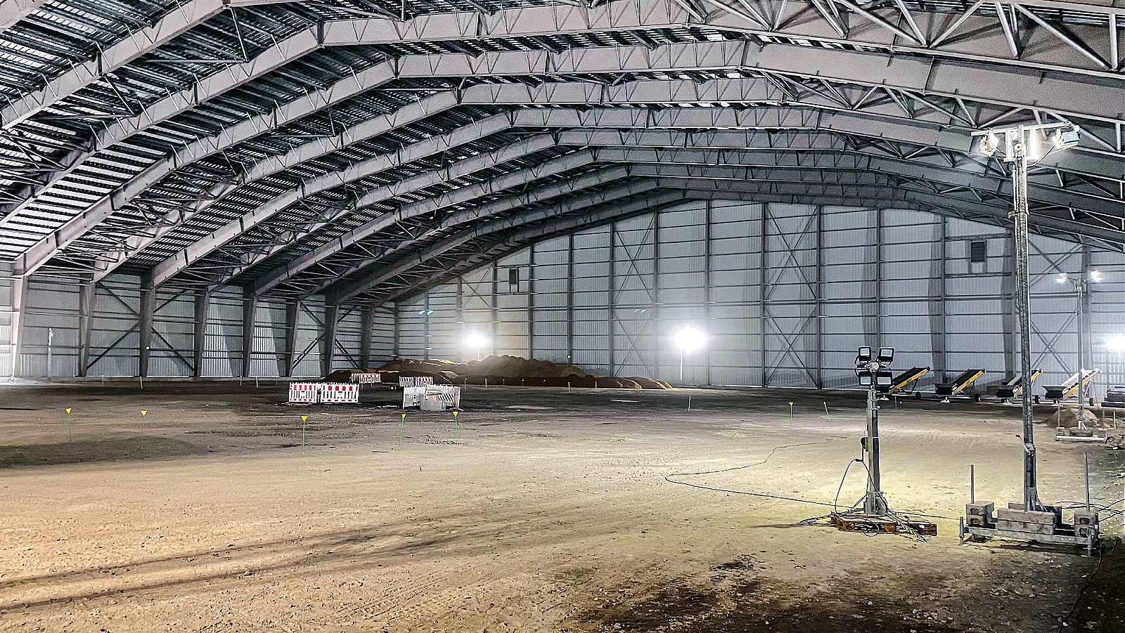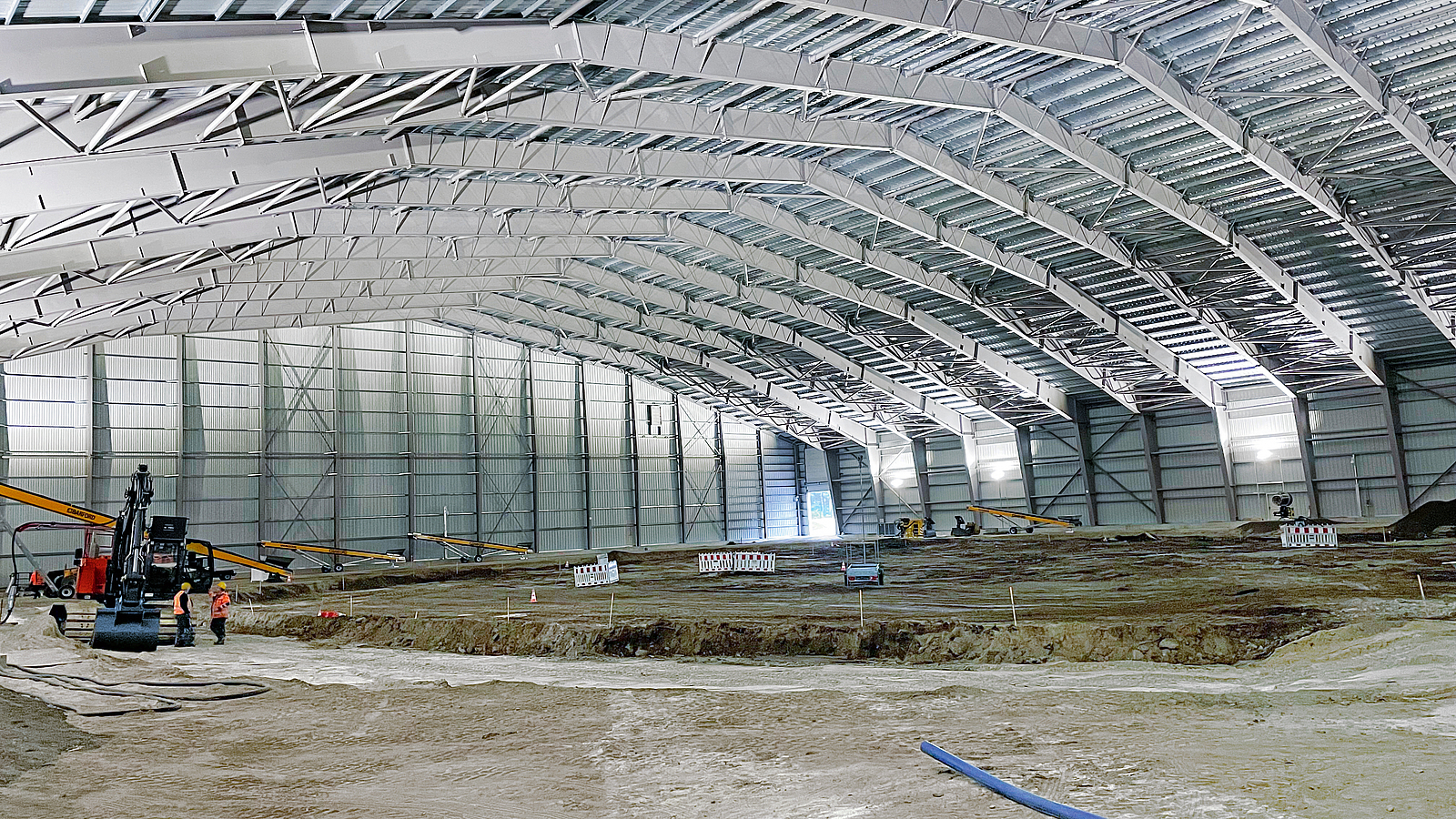 Darüber hinaus wurde ab Dezember 2022 die ca. 10.000 m² große Bergungshalle errichtet – eine freitragende Stahl-Leichtbau-Halle, die das gesamte Areal überdeckt und umschließt. Mit einer Größe von ca. 106 m × 97 m und einer Höhe von knapp 25 m handelt es sich momentan um die größte freitragende Halle dieser Bauart in Europa.
