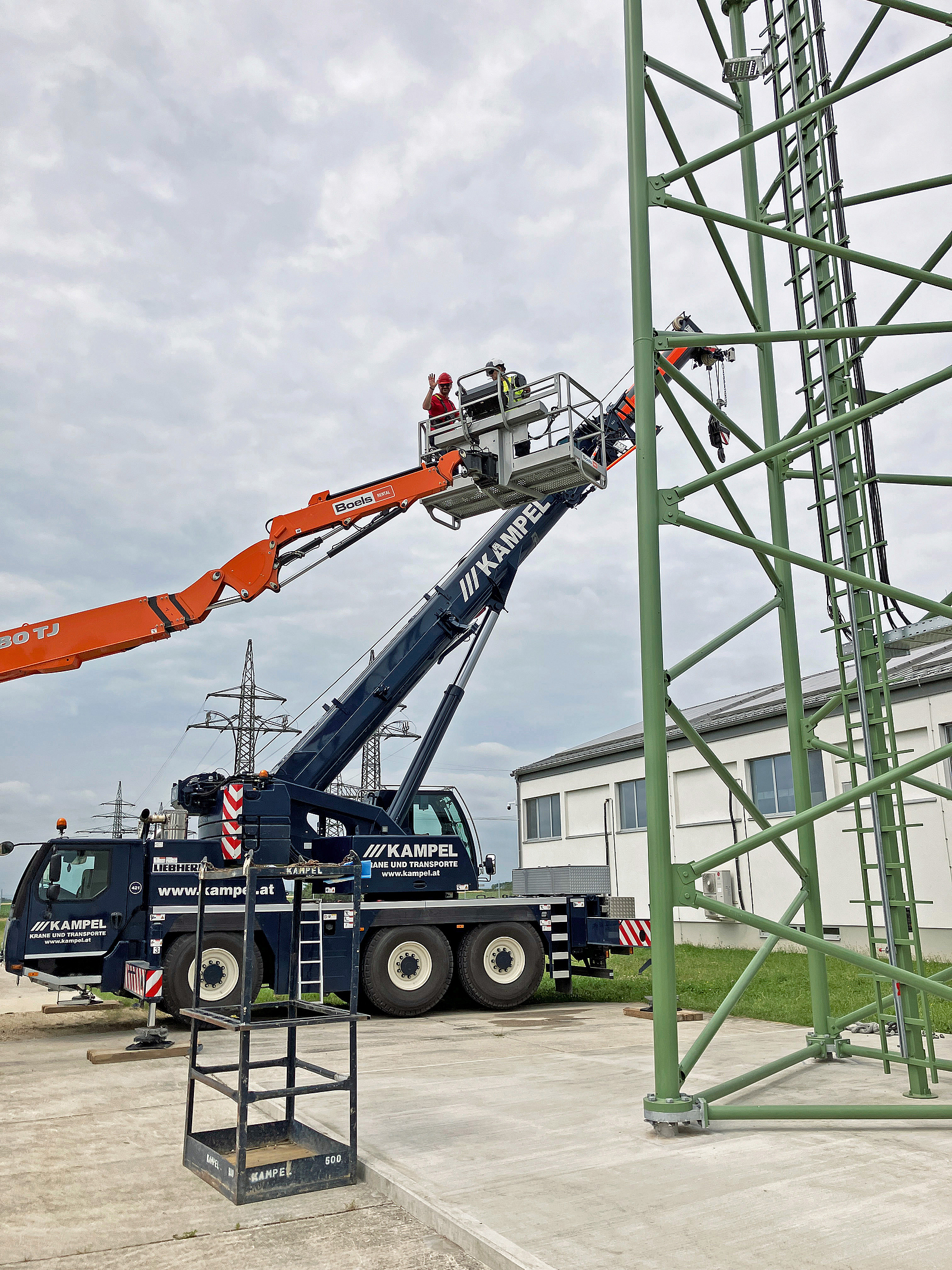 Ein 52 m hoher Richtfunkturm wurde als Ersatzneubau auf dem Gelände des Umspannwerks in Frauenkirchen im österreichischen Burgenland im Auftrag der Netz Burgenland GmbH errichtet. Die von Unger Stahlbau gelieferte und montierte Stahlkonstruktion wurde bis zu einer Höhe von 42 m als geschraubte Stabwerkskonstruktion ausgeführt und nur im obersten Segment geschweißt ausgebildet. An ausgewählten Knotenpunkten im Richtfunkturm verbaute das Unternehmen fischerwerke seine neuen SensorBolts, um damit in den nächsten Monaten Daten zu sammeln.