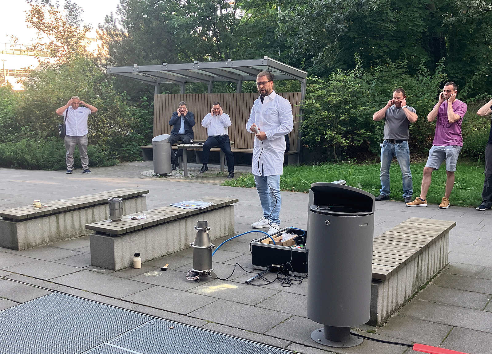 Im Außenbereich wurden durch Stäube hervorgerufene Staubexplosionen demonstriert.