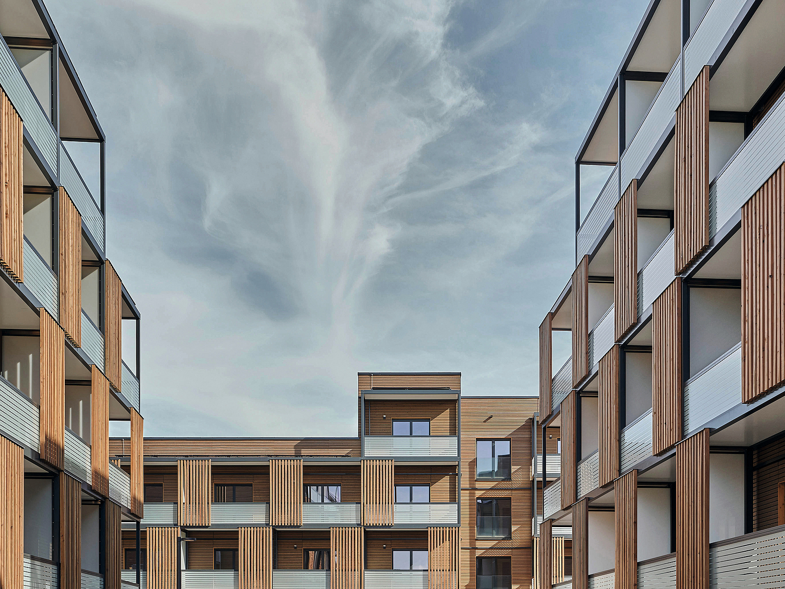 Modernes Brandschutzkonzept bei der Wandbekleidung ermöglichte Fünfgeschosser in Holzbauweise.