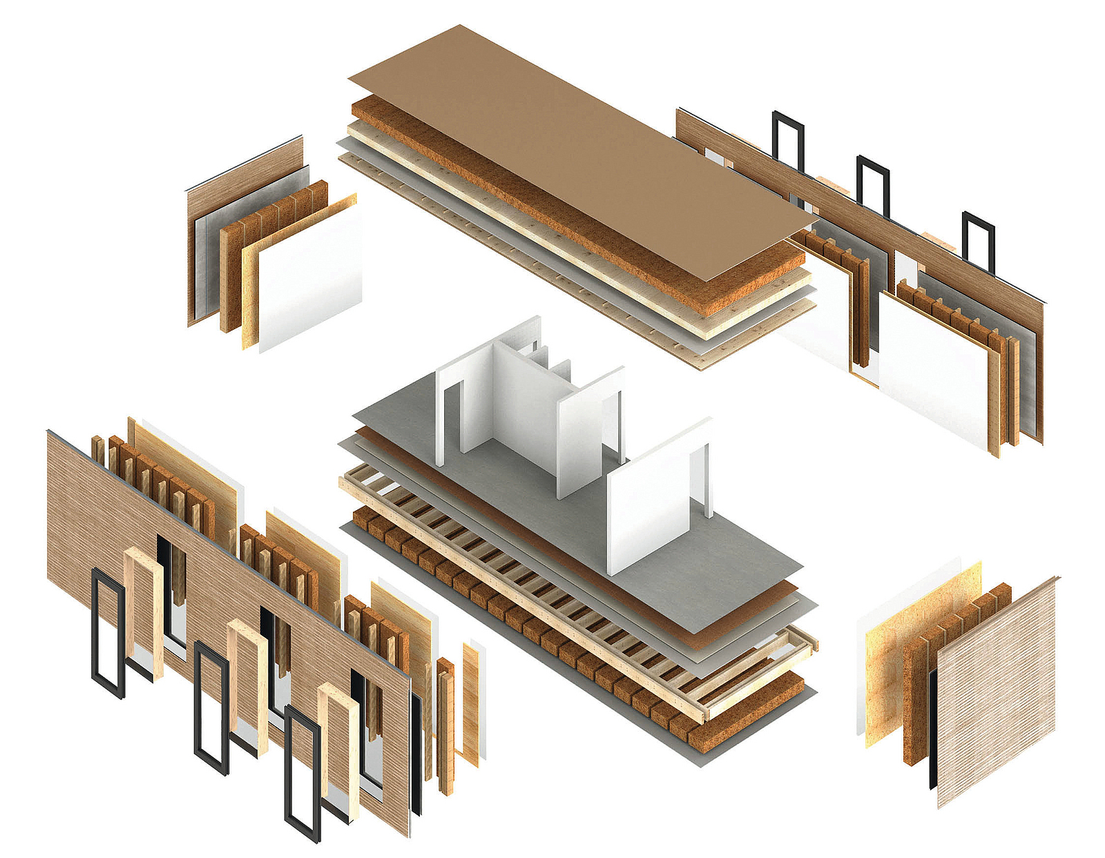 Alle Module sind in Holzständer-Bauweise aus recycelfähigen, weitestgehend nachwachsenden Materialien aufgebaut.