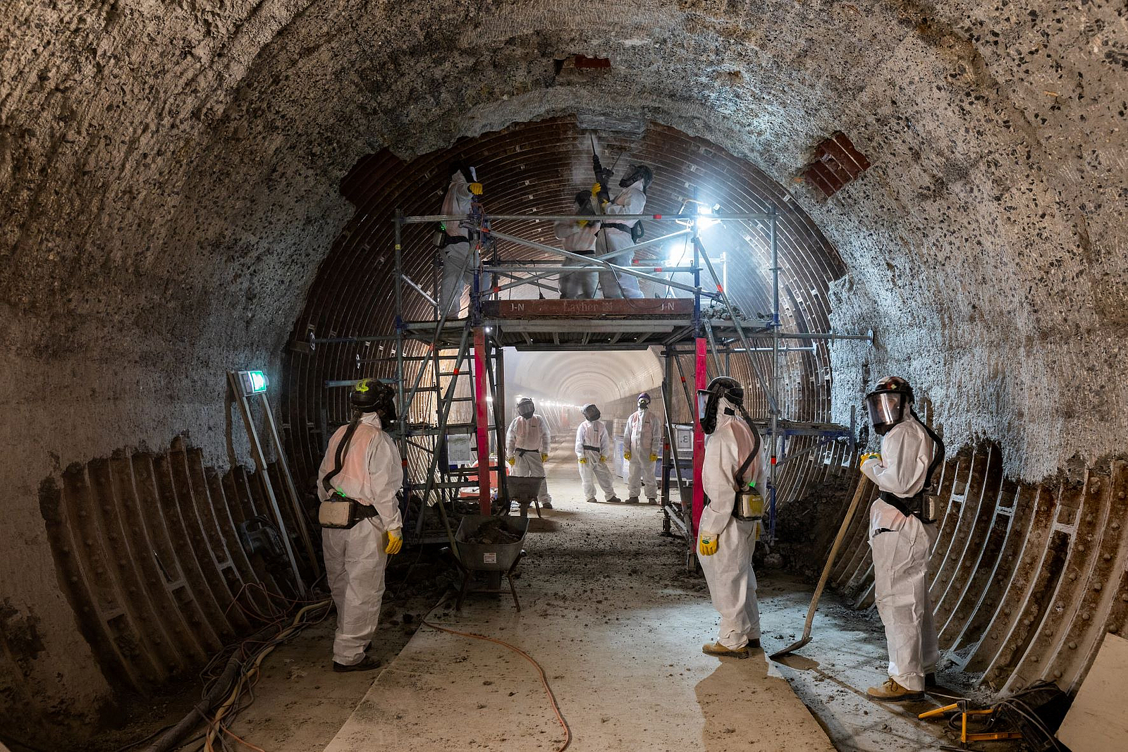 Für die Tübbing-Sanierung wird zunächst die Tunnelinnenschale zurückgebaut, um die Tübbings freizulegen. Nach Sanierung der Bleifugen und Nietverbindungen erfolgt anschließend eine Spritzbetonauskleidung, die auch als Korrosionsschutz dient.