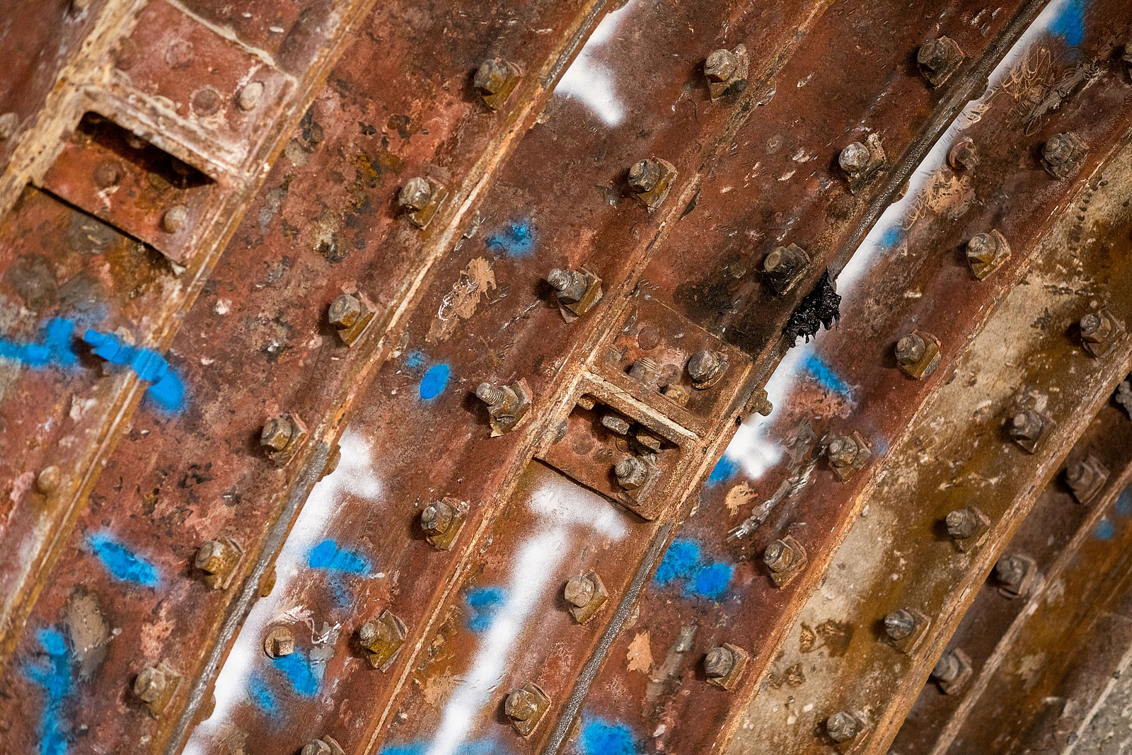 Nach dem Freilegen konnte mit dem Kern der Arbeiten, nämlich der Sanierung der zum Teil undichten und korrodierten Tübbing- Fugen und Verbindungsmittel begonnen werden. Hierzu wurden in einem ersten Arbeitsschritt die freigelegten Stahltübbings gereinigt, sodass korrosive und abgängige Bestandteile vollständig entfernt wurden.