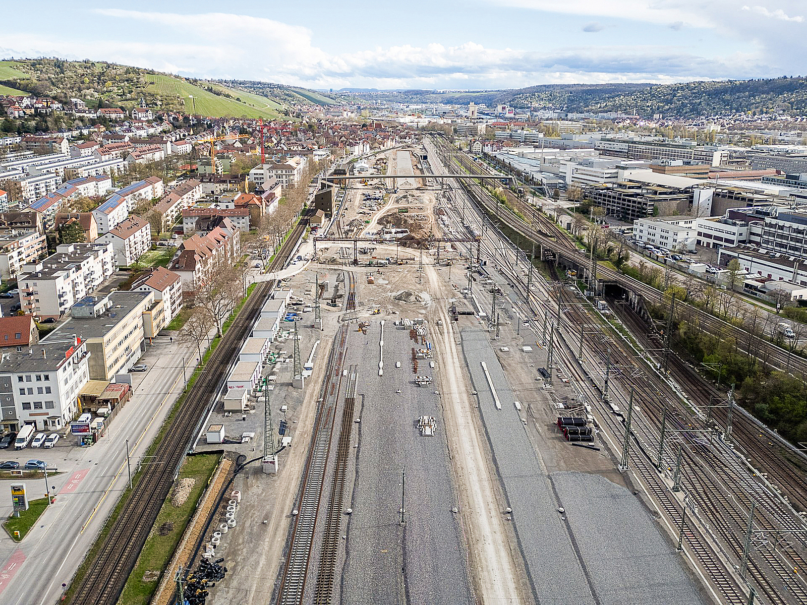Das Baufeld in Untertürkheim misst rund 17 ha und wird in Nord-Süd-Richtung auf der einen Seite von der seit März 2023 in Betrieb befindlichen Interregio-Kurve (Str. 4721) sowie auf der anderen Seite von den Nahverkehrsgleisen der Stadtbahn und der anliegenden Wohnbebauung begrenzt. Durch diese spezielle Lage kommt der Baustellenlogistik eine prägnante Bedeutung zu. Die Zu- und Abführung des hohen Massenaufkommens, wie Boden, Planumsschutzschicht (PSS), Gleisschotter sowie Stückgut (z. B. Stahlbetonfertigteile), kann trotz der limitierten Gleisanbindung an den Streckenbestand auch auf der Schiene erfolgen.